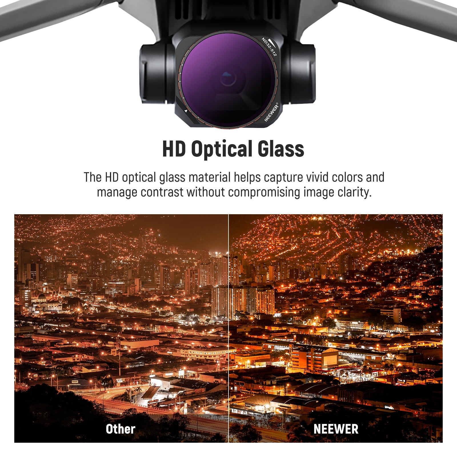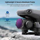 - Lightweight & Secure Aluminum Frame- These filters are firmly sealed and framed with lightweight, yet secure aluminum alloy. Each filter in the kit weighs only 0.18oz/5g, making it barely noticeable on your drone and ensuring that the drone's gimbal calibration won't be affected