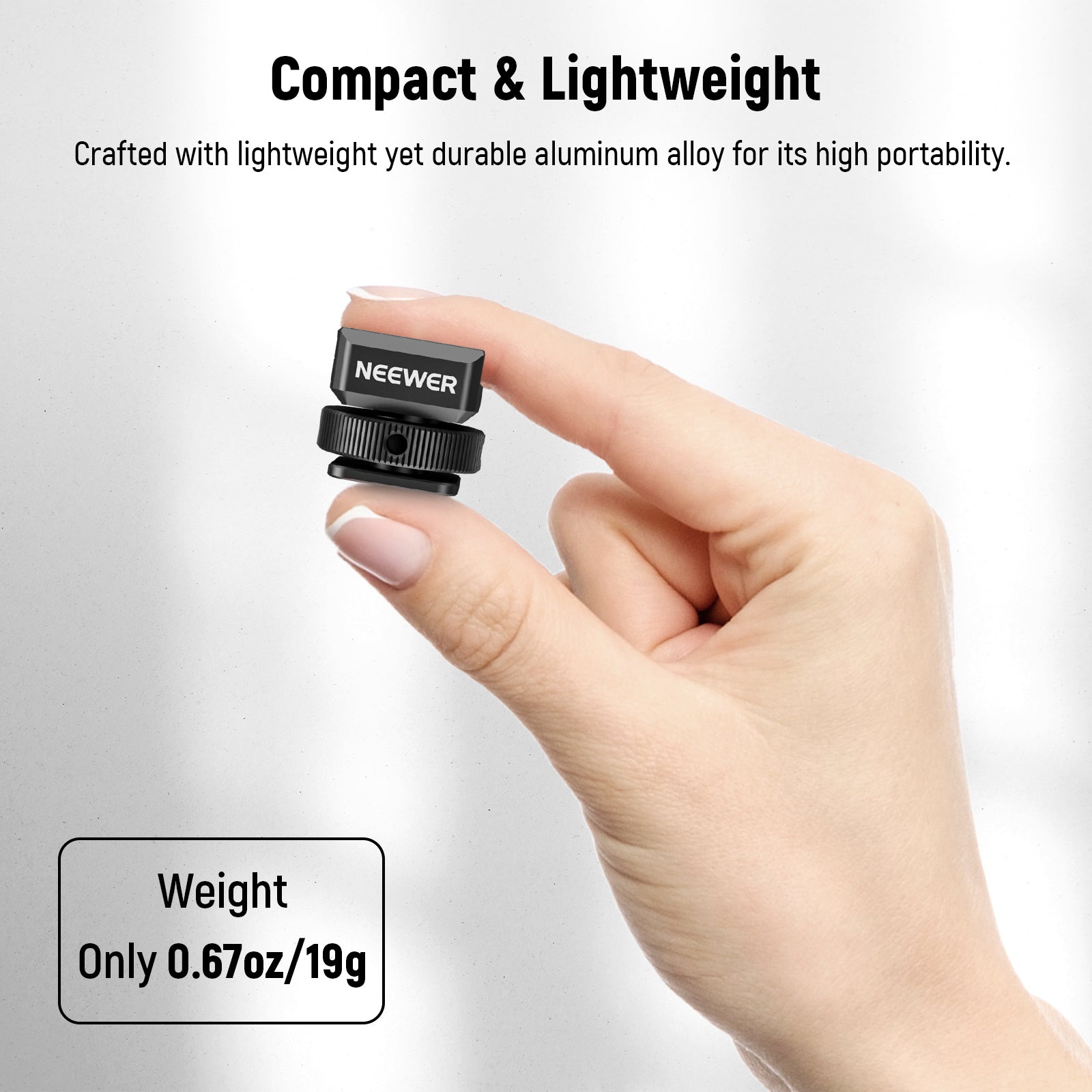 - Lightweight & Sturdy- Engineered with black anodized aluminum alloy, this adapter is scratch-resistant and rust proof. Measuring 9.8"x9.4"x8.3"/25x24x21mm and weighing merely 0.67oz/19g, it is compact and portable enough for filming on the go