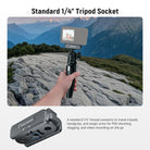 - Standard 1/4" Tripod Socket- A standard 1/4" thread connects to travel tripods, handgrips, and magic arms for POV shooting, vlogging, and video recording accessories on the go