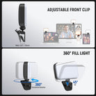 - Compact & Lightweight Phone Light- NEEWER N8 clip on overhead light is a premium soft fill light, compact at 3.3"x3.7"x0.7"/85x94x18mm, weighing only 1.94oz/55g. Mount onto a phone camera (compatible with iPhone), desk laptop, or desktop PC to flatter your skin and enhance your look in selfie pictures, vlogging recording, video conferencing, live streaming, Zoom calls, and more. The clamp features a ball head that enables 360° rotation and front to back tilting for versatile lighting angles