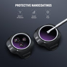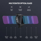 - Multicoated Optical Glass- Optical glass with multilayer, dual-sided coatings ensures clear footage while resisting water, fingerprints, and scratches. A cleaning cloth is included for daily care