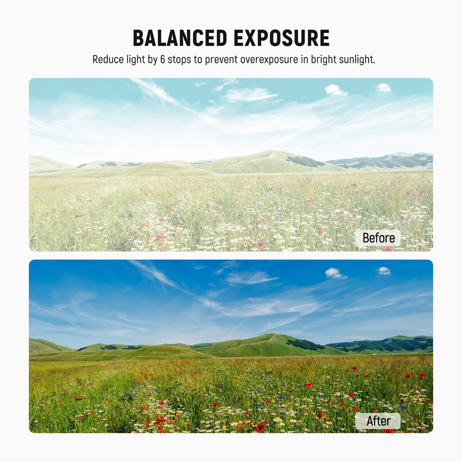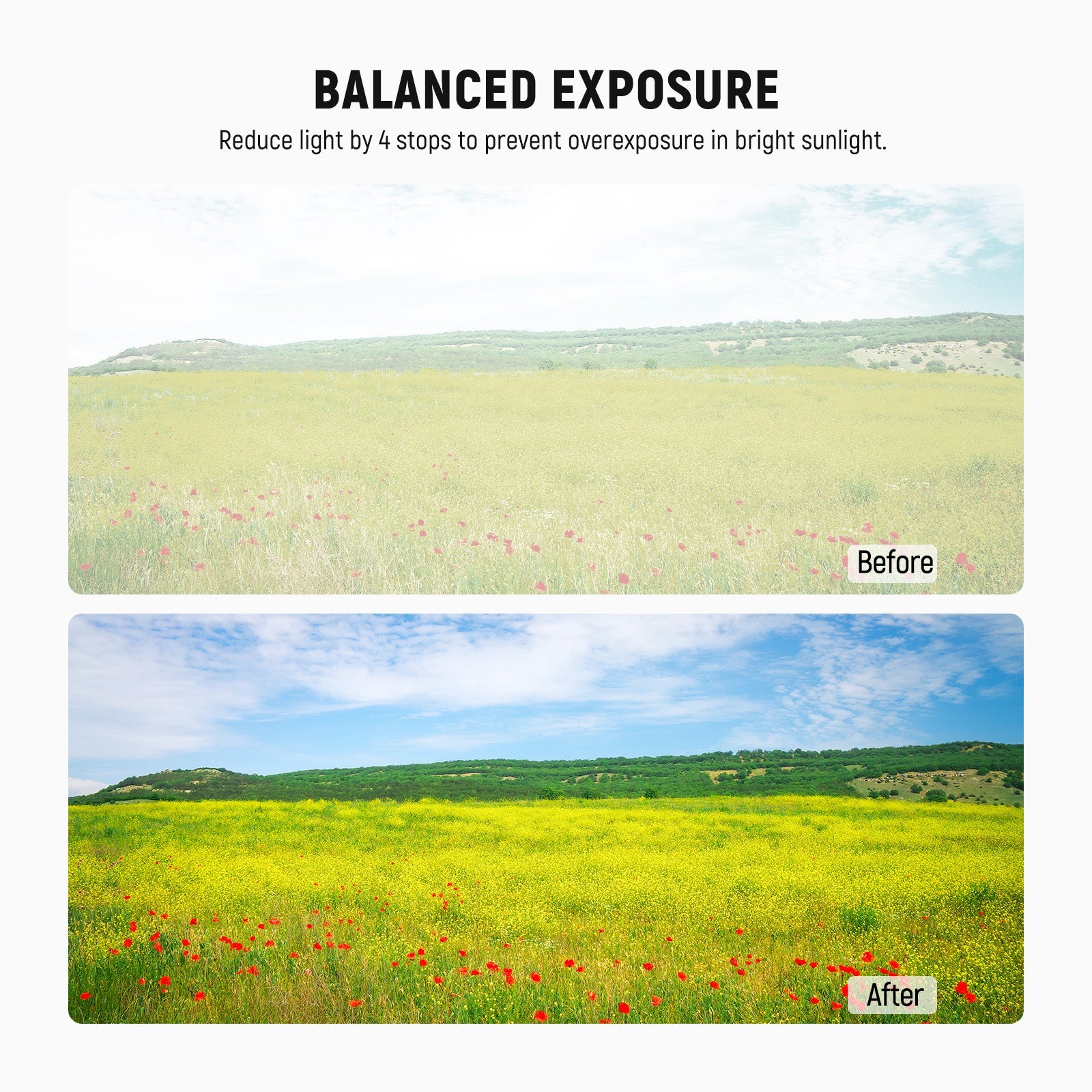- Balanced Outdoor Exposure- ND16 neutral density camera lens filters cut light by 4 stops to prevent overexposure in bright conditions and capture rivers, waterfalls, and light trails with smooth motion blur