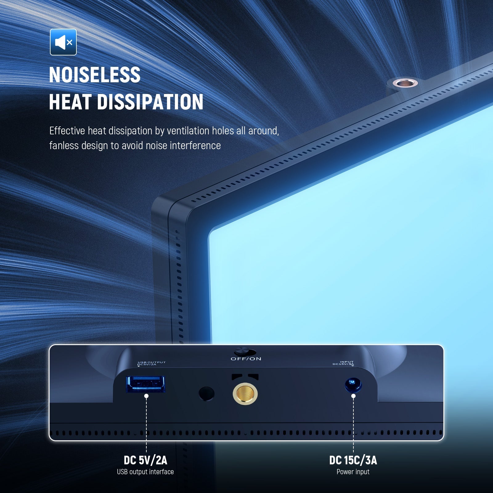 - Efficient, Noiseless Cooling System- This RGB LED panel light is crafted from heat conduction material, designed with vents all around to ensure effective and timely heat dissipation, avoiding problems with malfunctioning from overheating and extending the lifespan of the streaming fill light. The fanless cooling system operates silently to minimize noise disruption during your creative process, significantly reducing the need for extensive post production work
