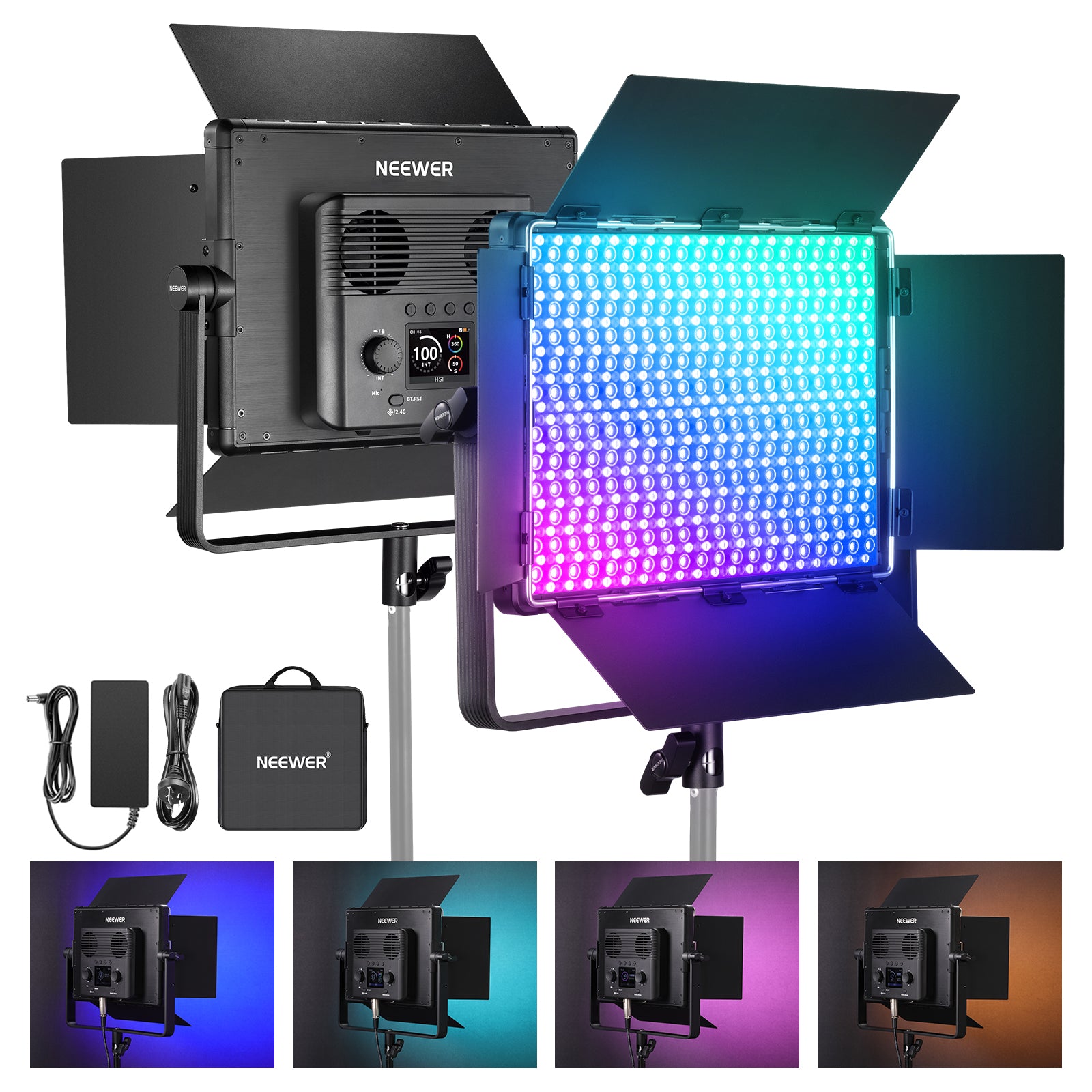 - RGBCW Full Color LED Panel Light- With 800 premium LEDs, NEEWER PL60C Full Color RGB Video Light offers 60W maximum power and 6400lux/1m 23000Lux/0.5m illuminance for bright illumination. PWM technology ensures a 1% precise increment in a 0-100% dimming range with 4 precise dimming curves. CRI 96+ and TLCI 97+ bring faithful color reproduction. 2500K-10000K color temperature and 0-360° hue angles give you creative photography lighting for video recording filming streaming podcasting photoshoots