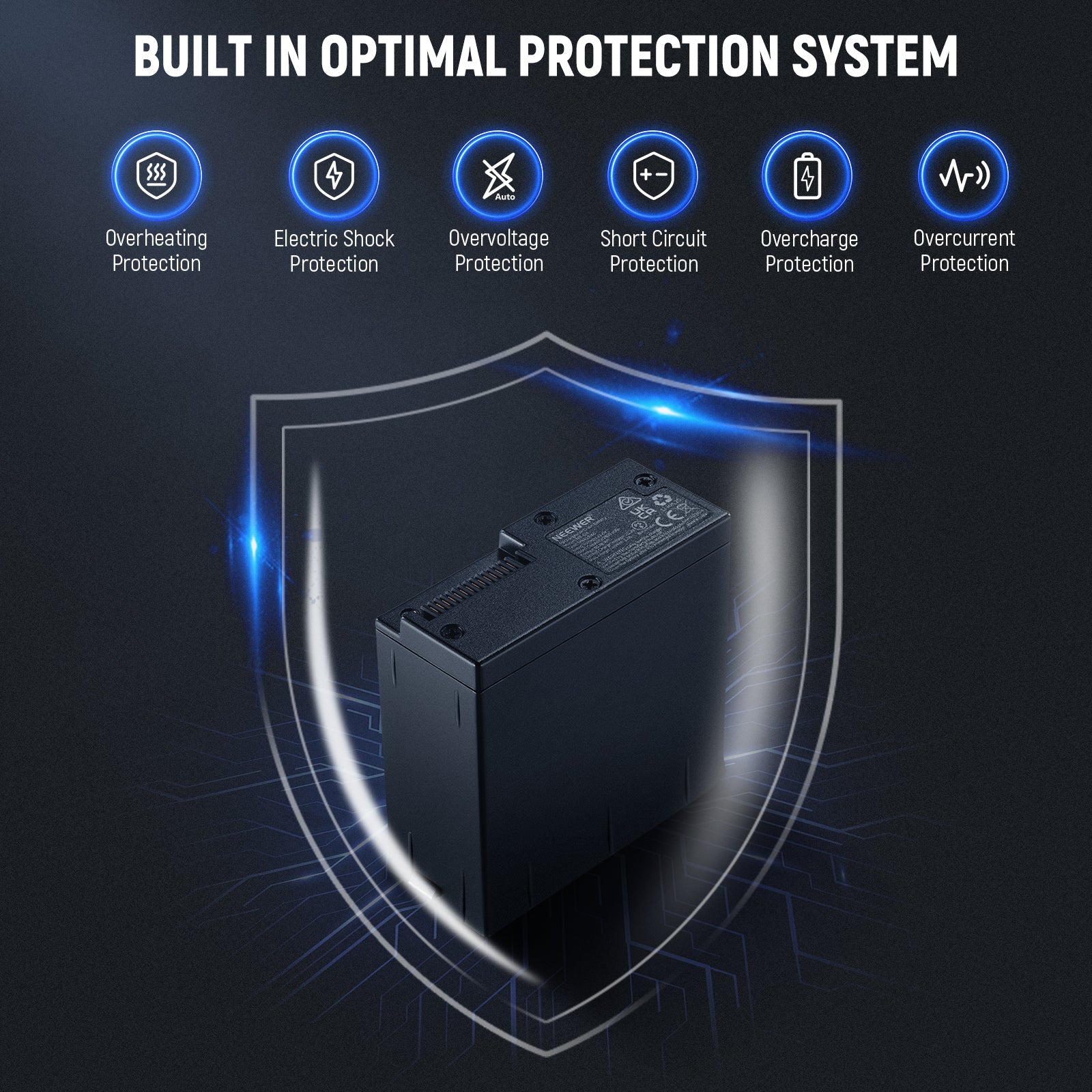 - 21.6V/2800mAh Lithium Battery- Increased battery capacity provides 400 full power flashes, a recycling time of 0.01-1.2s and a flash duration of 1/209-1/10989s, perfect for capturing continuous action. Battery compartment for easy replacement of spare batteries. With a DC charging port, the flash can be powered via the included adapter and takes about 3.5 hours to fully charge. NOTE: For optimal battery longevity, please fully charge the device before first use