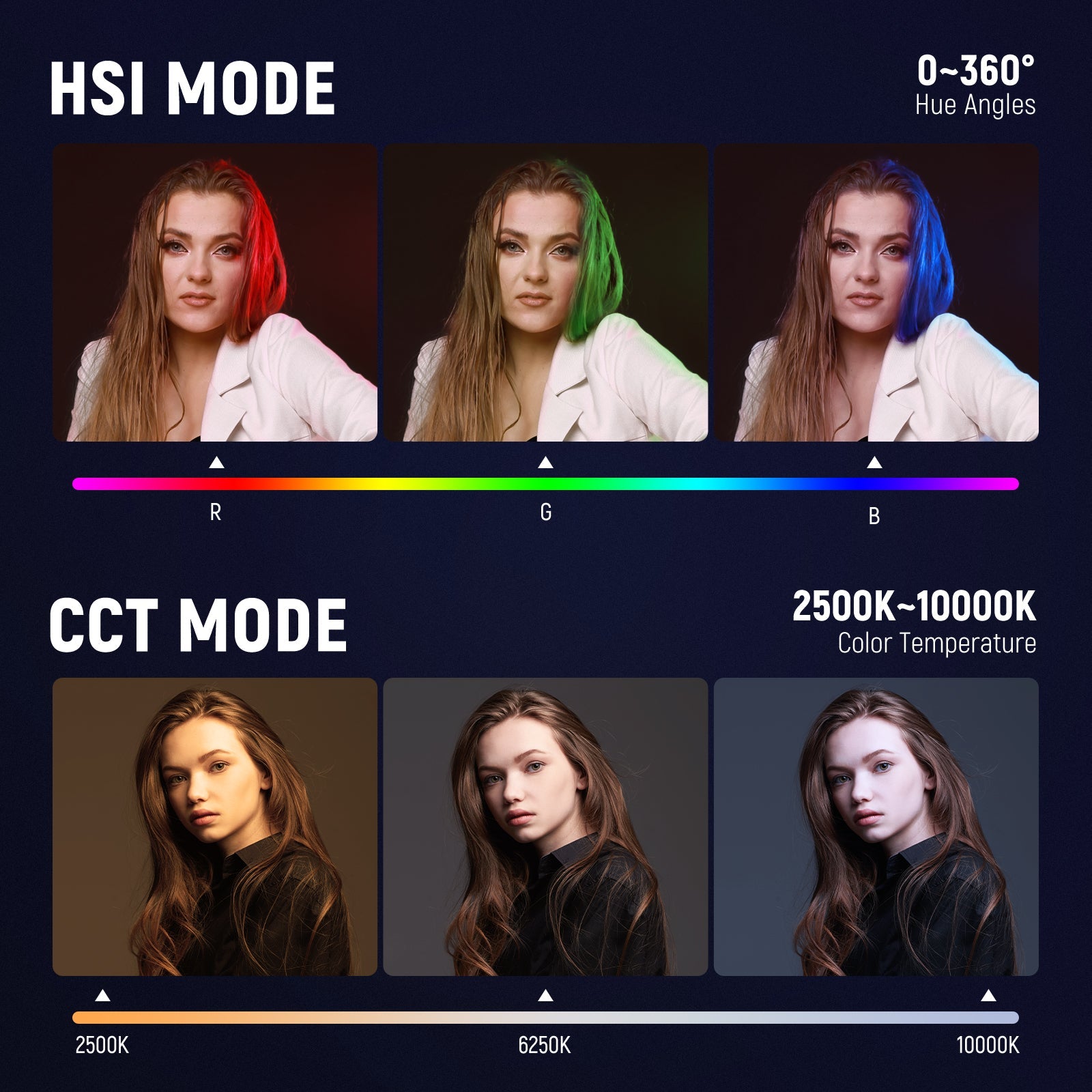 - Color Temperature: 2500K-10000K (100K increments)