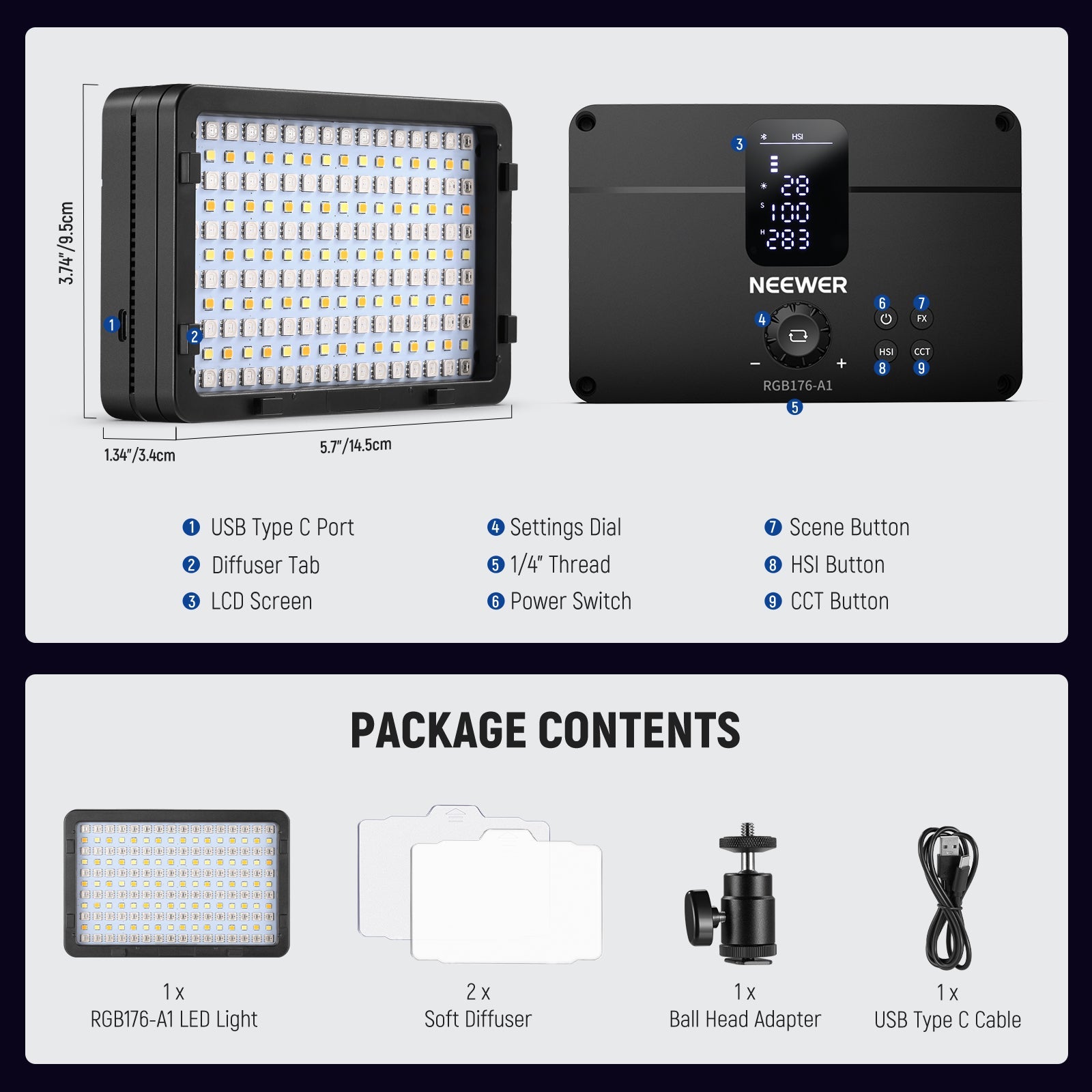- Upgraded Onboard & Wireless APP Control- For optimal user experiences, the light is upgraded with a handy control panel that features buttons for each light mode and an LCD screen that displays your selections for accurate and quick lighting adjustment. For wireless control, you can pair the light with your phone using the NEEWER APP and manipulate lighting from up to 49ft (15m) away