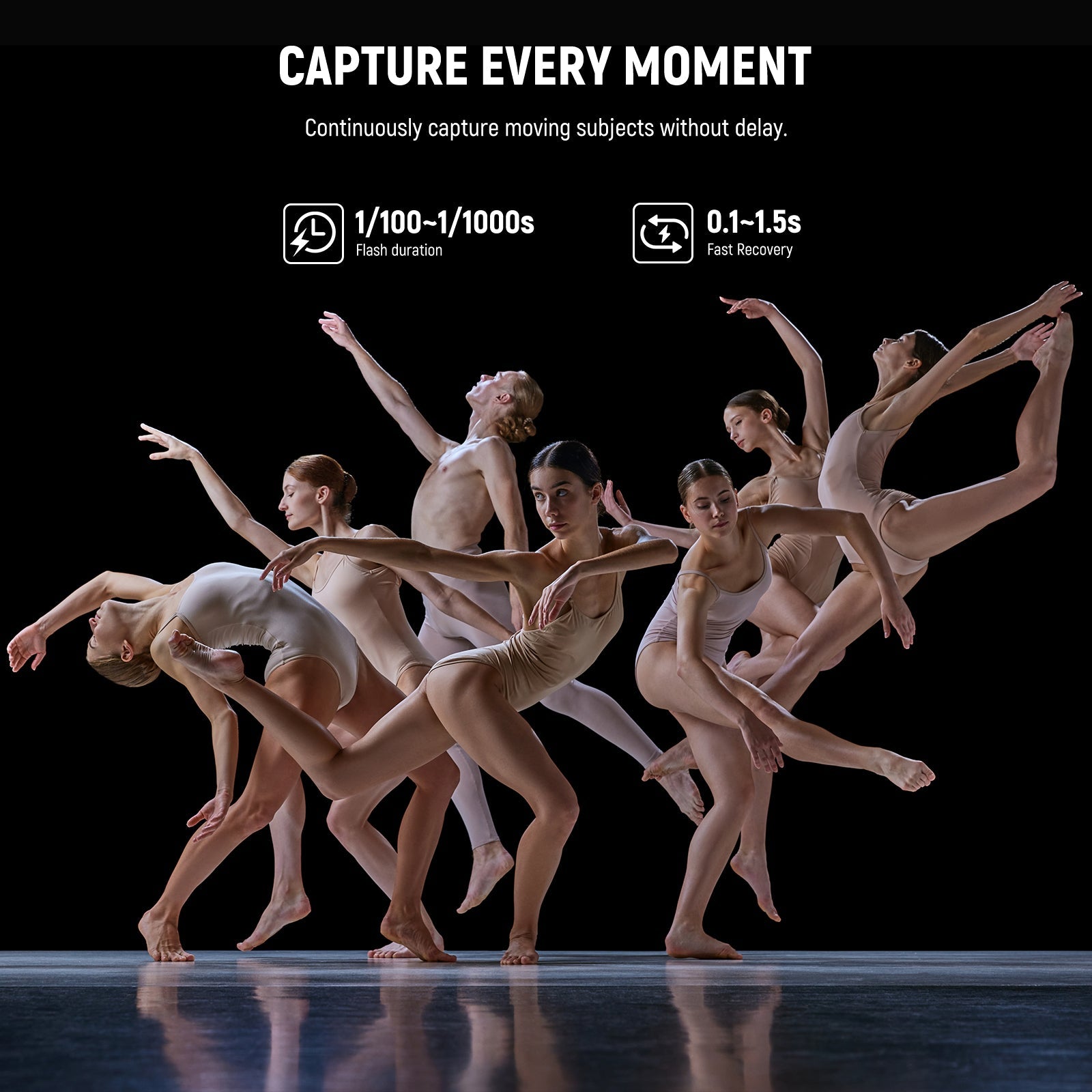 - Consistent 5600K±200K Daylight- The 5600K±200K neutral cool daylight ensures faithful color reproduction. The flash tube is resistant to high heat and high voltage for stable performance and 1000 continuous full power flashes (flash power adjustment: 4.0-10 (1/64-1/1)). The HD display provides a visual reference and saves data for quick flash setups