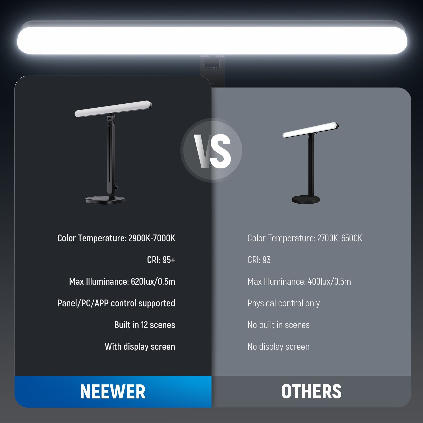 - Multifunctional LED Desktop Light- This multipurpose LED fill light employs a linear shape for flexible and space saving positioning. It comes with a 16"/40cm light tube, a metal base, a three way adjustable stand, and a 6.6'/2m USB Type C cable. Easily control this light on your PC/Mac or smartphone with NEEWER APP for gaming, live streaming, Zoom calls, video conferencing, studying, reading, and working