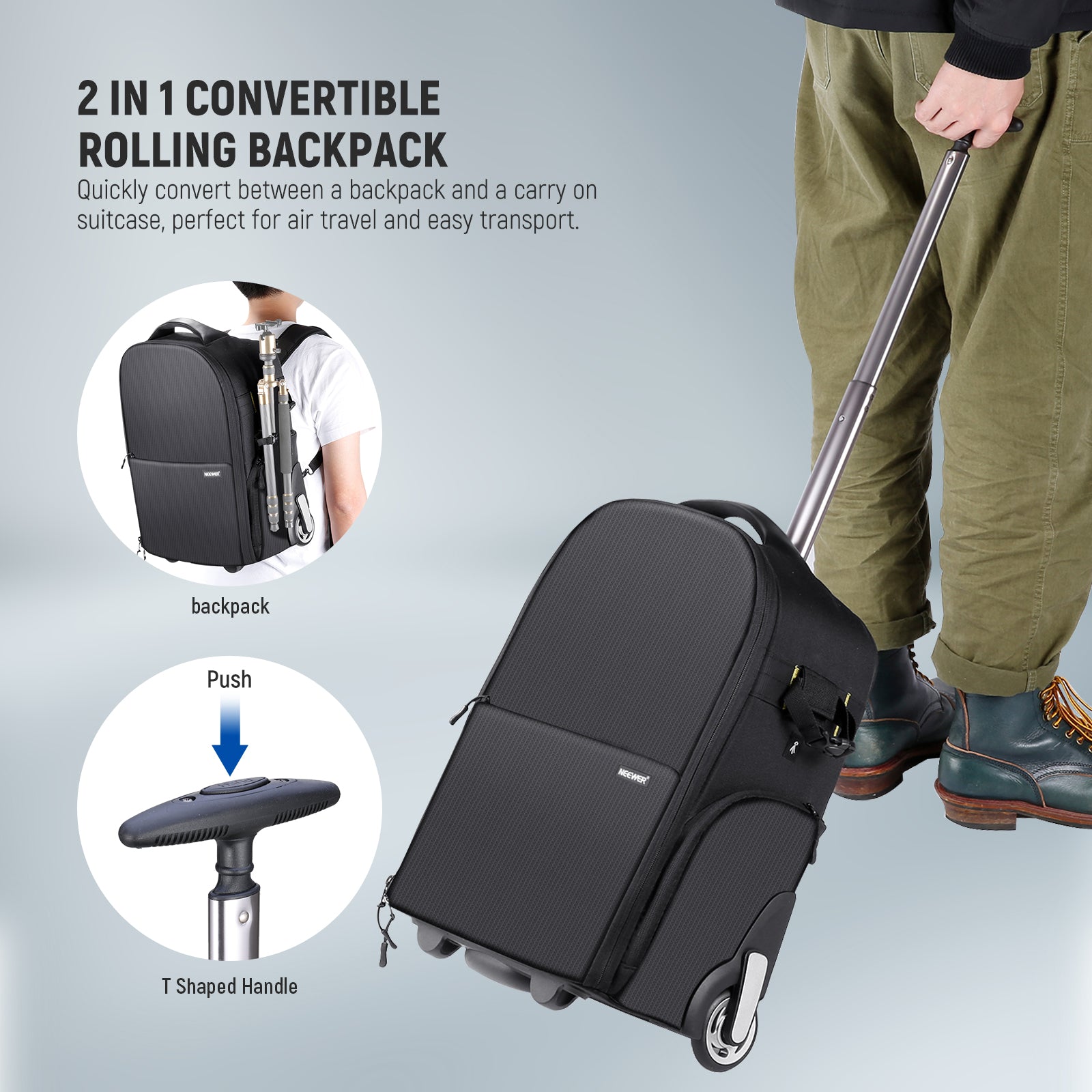 - This is a premium travel companion. Convertible Rolling Camera Backpack can store and transport most of your camera gear with exceptional ease and convenience.