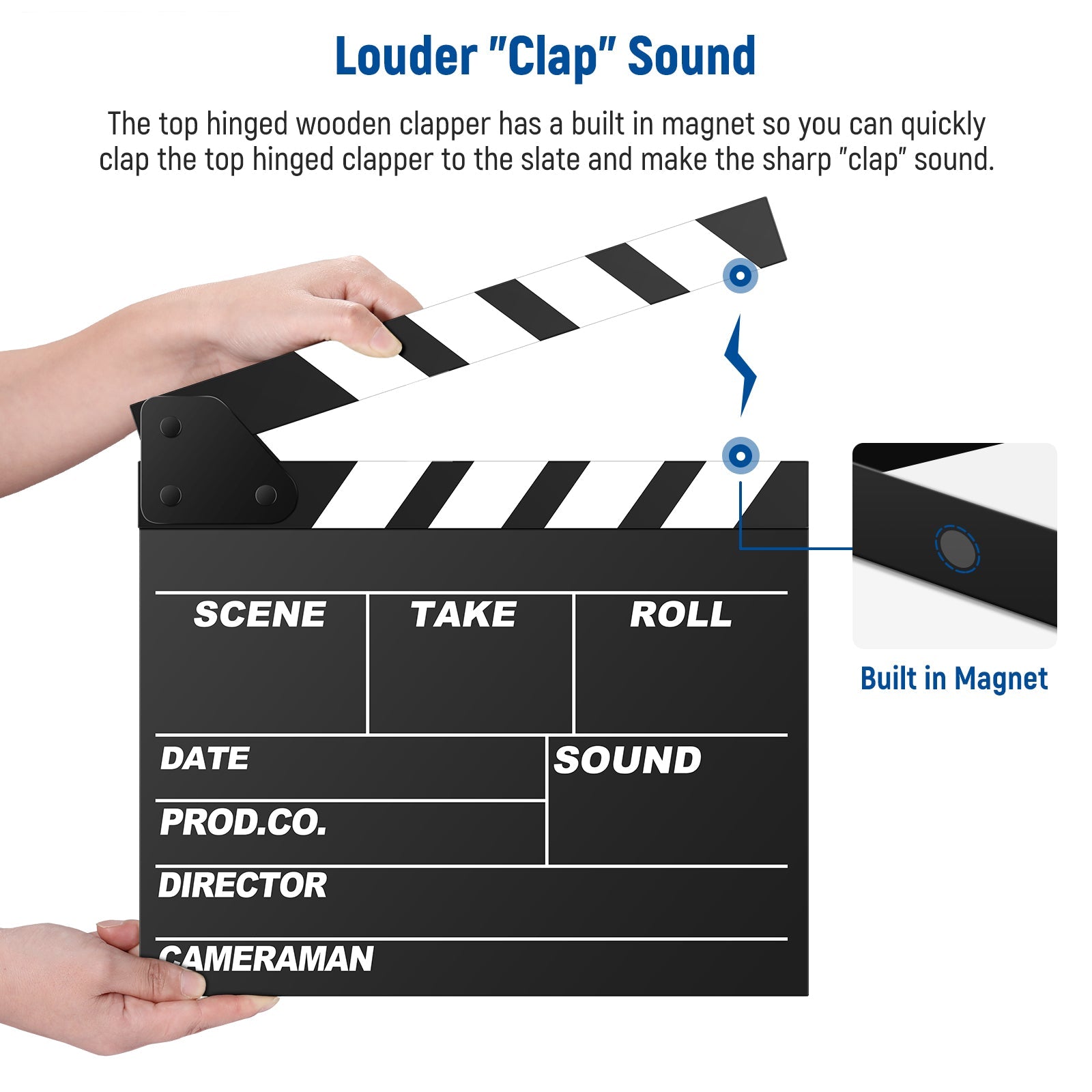 - Built for Crisp Sound- Features a built in magnetic clapper that provides a secure and reliable closure during filming, and more importantly, it produces a sharp crisp sound when clapping, making it easy to sync audio and video in post production