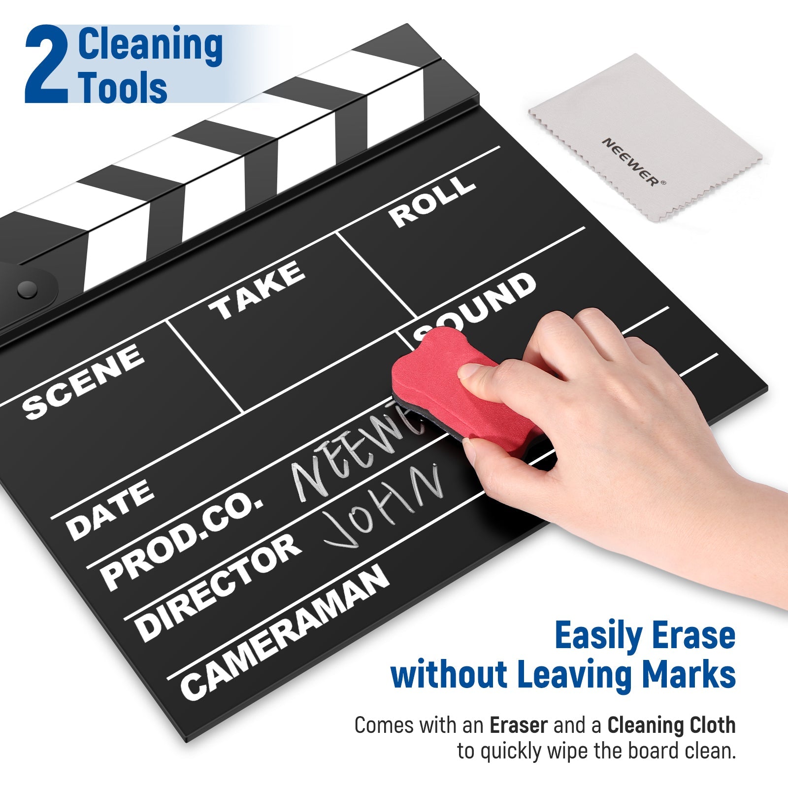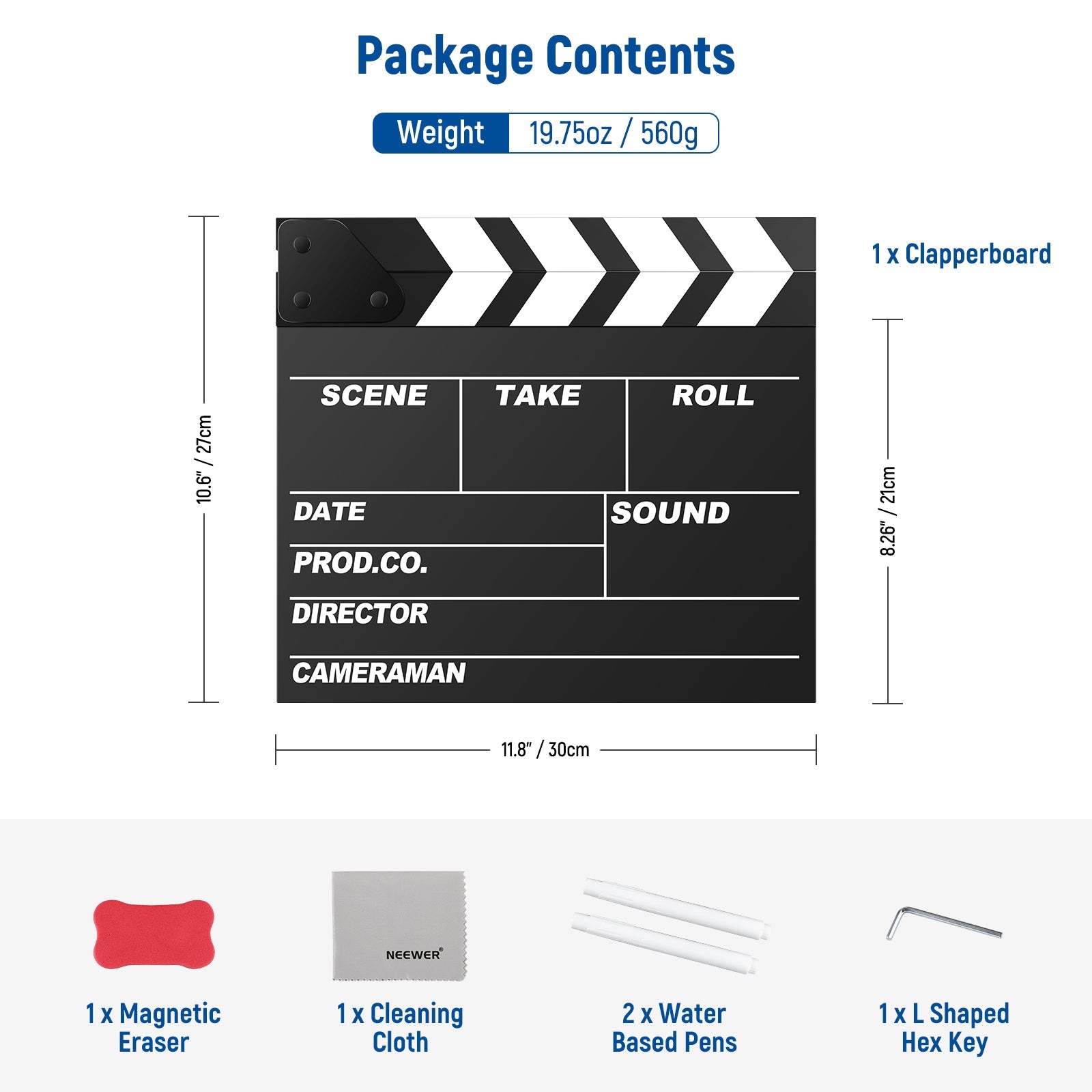 - Large Writing Area- Measuring 12" x 11" / 30 x 27cm, the upgraded clapperboard has an extra larger writing area of 12" x 8.2"/ 30 x 21cm. Ideal for filmmaking, music video shooting, advertising, time lapse photography, and more