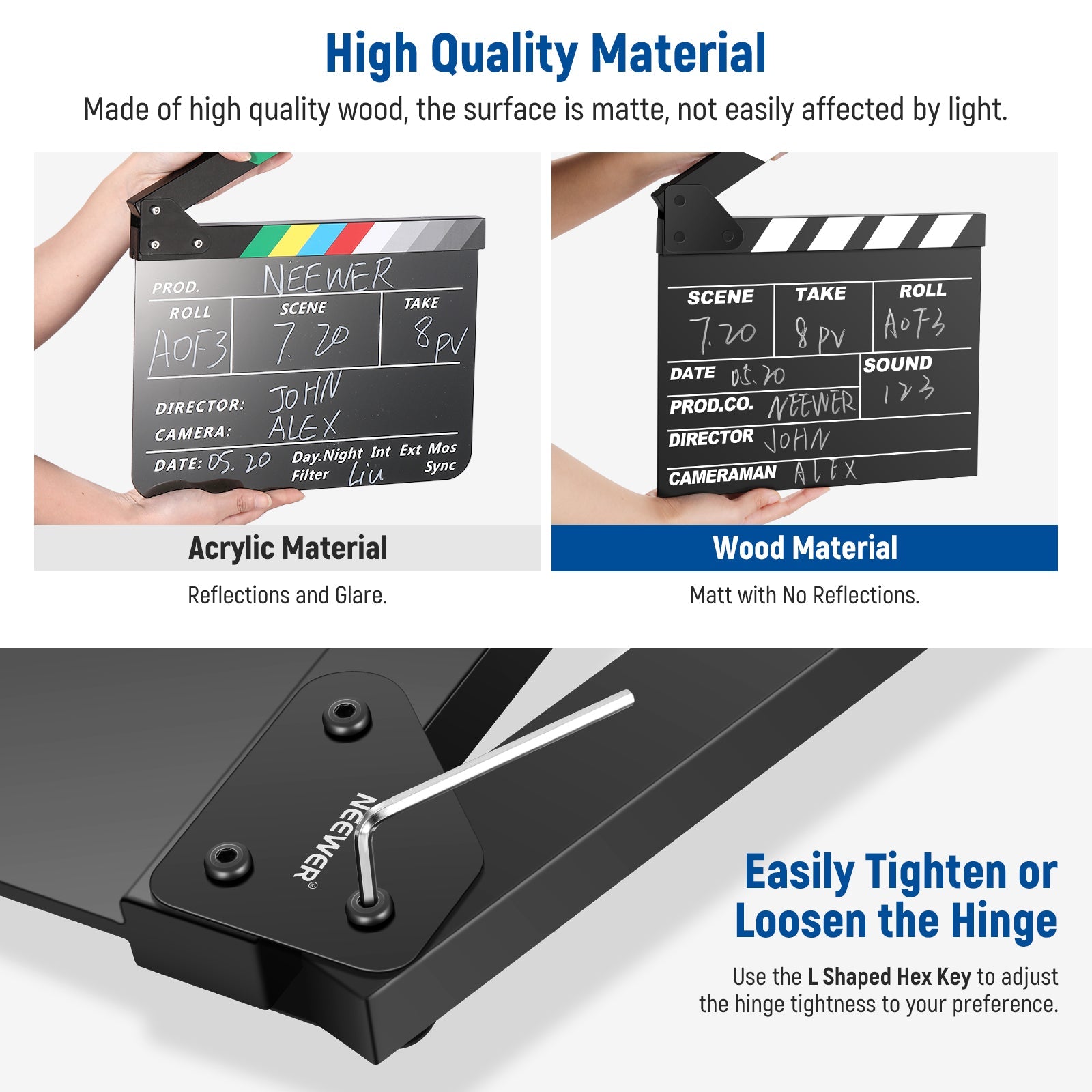 - Adjustable & Durable Bolts- The bolts in the sticks can be easily adjusted to your preferred tightness with the included wrench, allowing for smooth and seamless movement when clapping. Plus, the bolts are resistant to rust and wear, ensuring durability for extended use like filming, TV series, studio live, advertising, video, and other filming work
