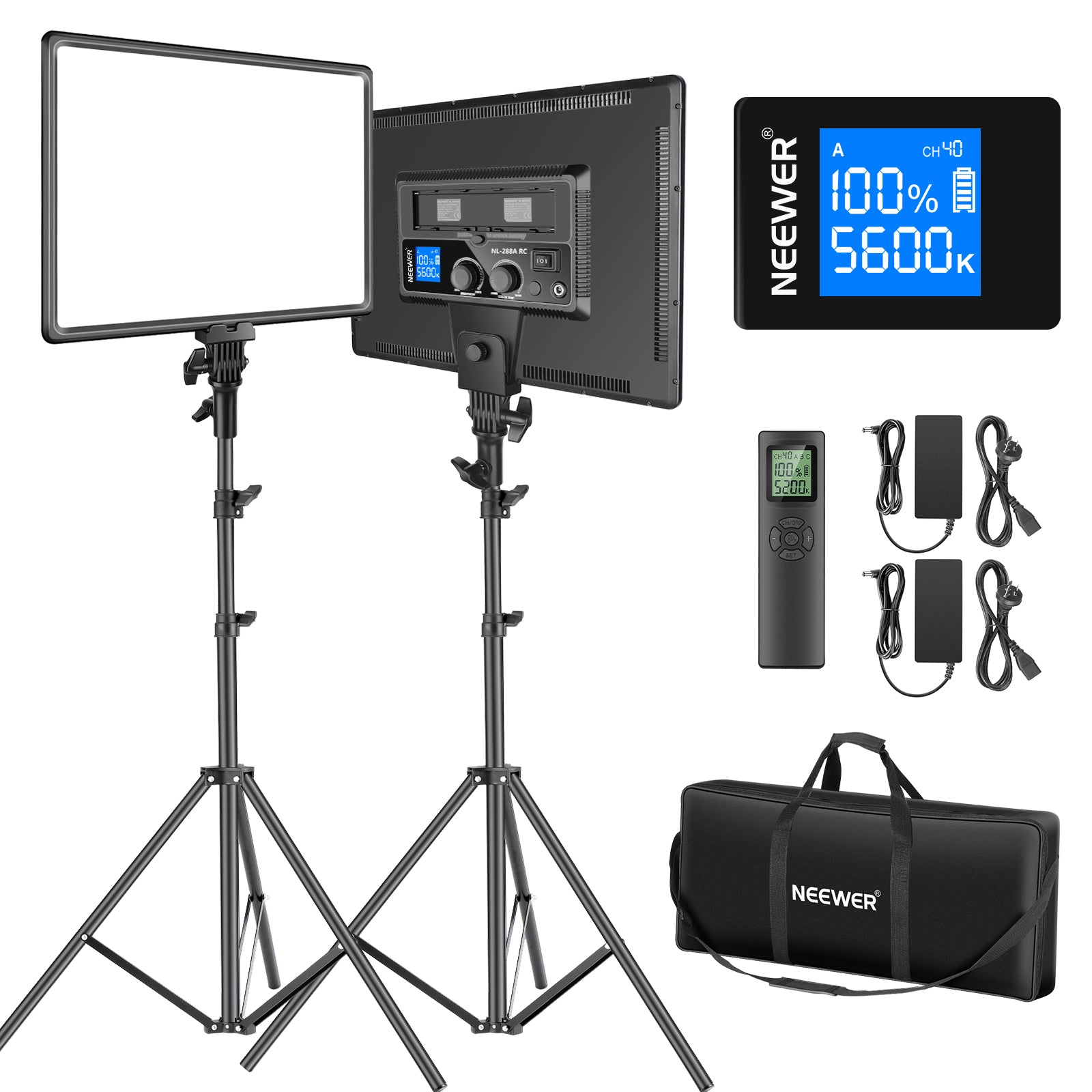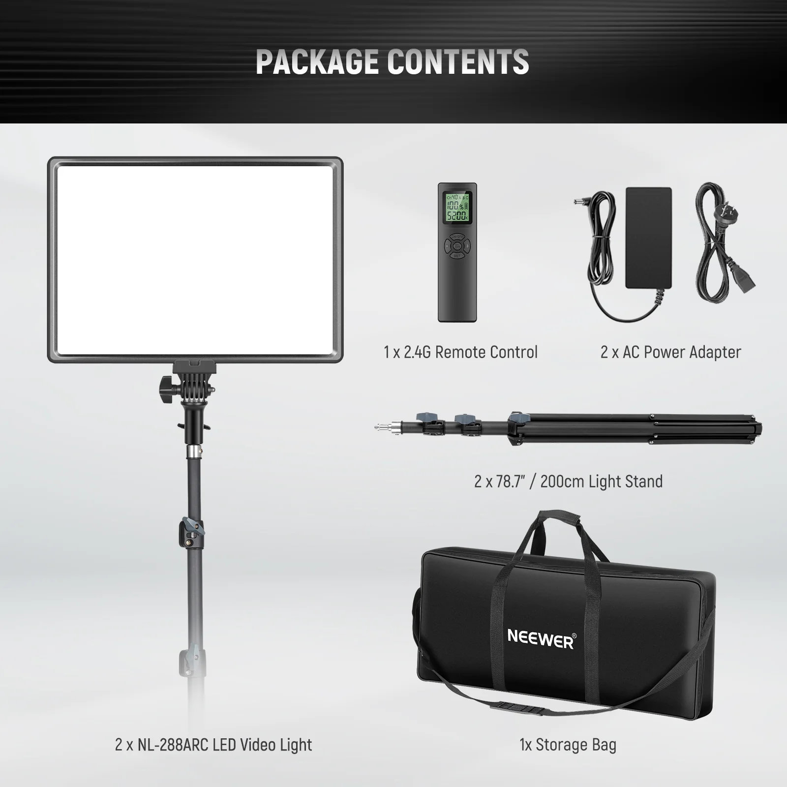NEEWER 2 Pack NL-288ARC Bi-Color LED Panel Light Stand Kit