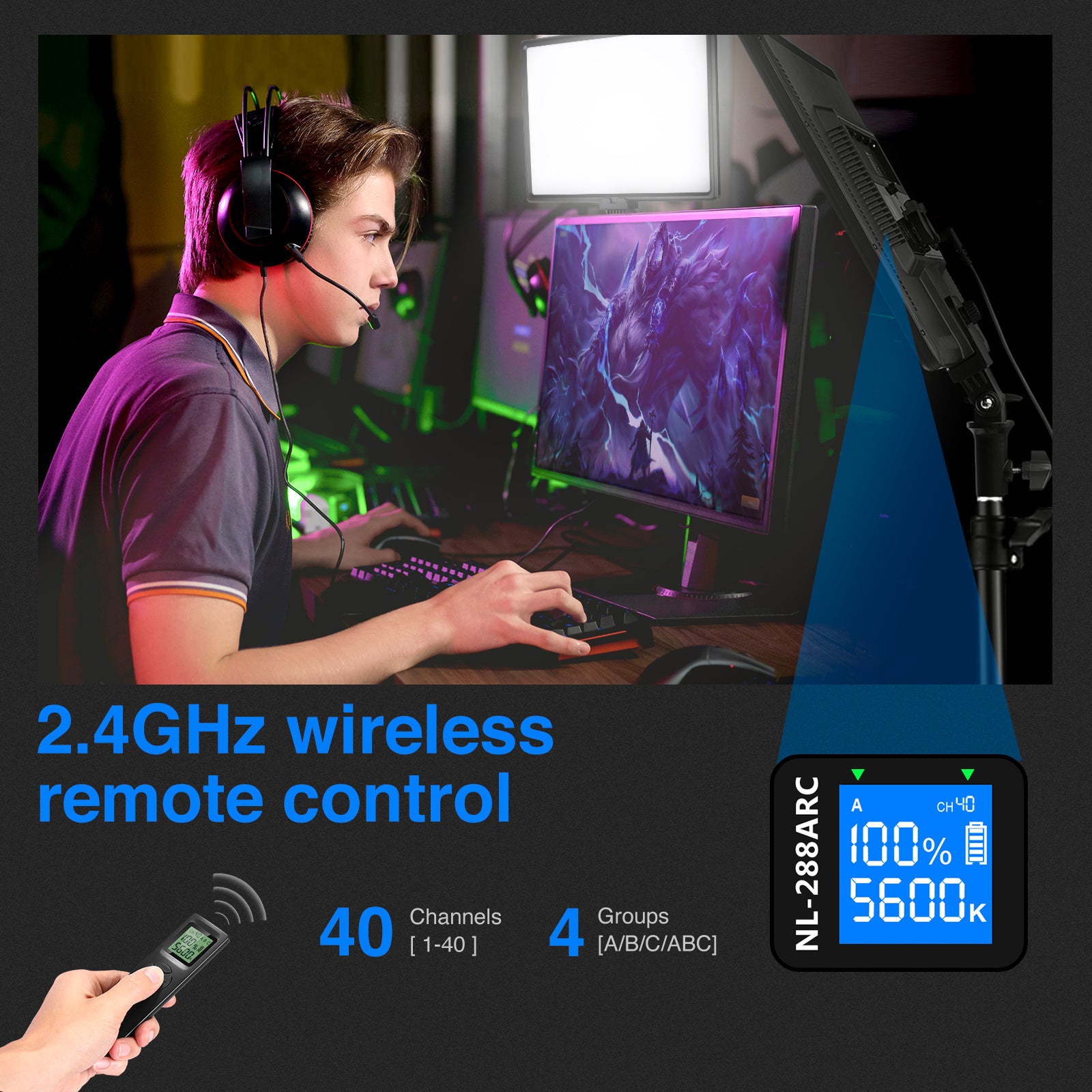 - 2.4G Wireless Remote Control- Designed with 40 Channels(1-40)and 4 Groups(A/B/C/ABC), in the same channel and same group, you can wirelessly control brightness/color temperature settings, channel/group selection, as well as accurately and timely control over dimming parameters (Note: The remote cannot turn off the light. It can just switch the brightness to 0%, so please turn off the light manually)