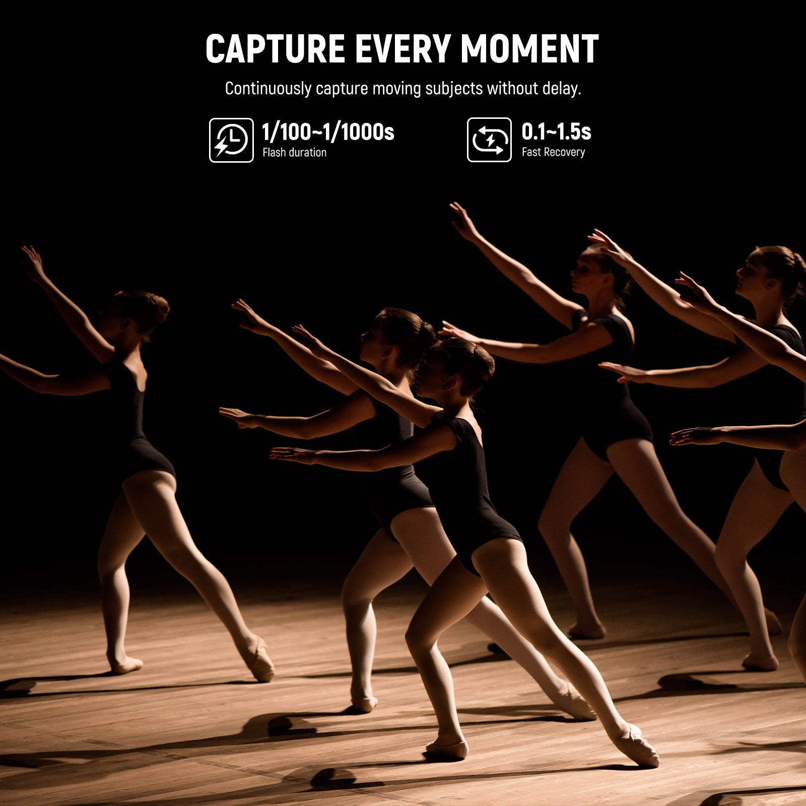- Consistent 5600K Cool Daylight- 5600K (-/+200K) neutral cool daylight ensures faithful color reproduction. The flash tube resists high heat and high voltage for stable performance and 1000 continuous full power flashes (flash power adjustment: 4.0-10 (1/64-1/1)). The HD display provides a visual reference and saves data for quick flash setups