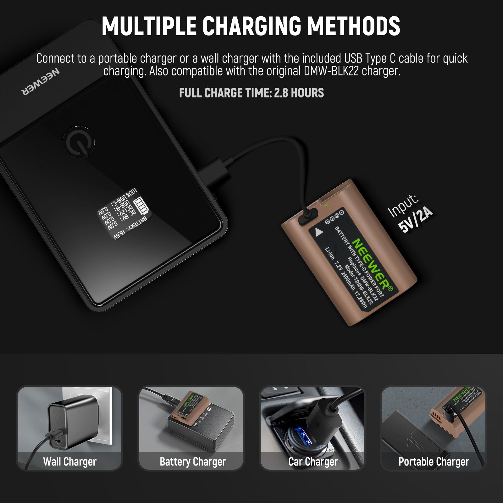 NEEWER 2400mAh DMW-BLK22 Replacement Battery For Lumix Cameras
