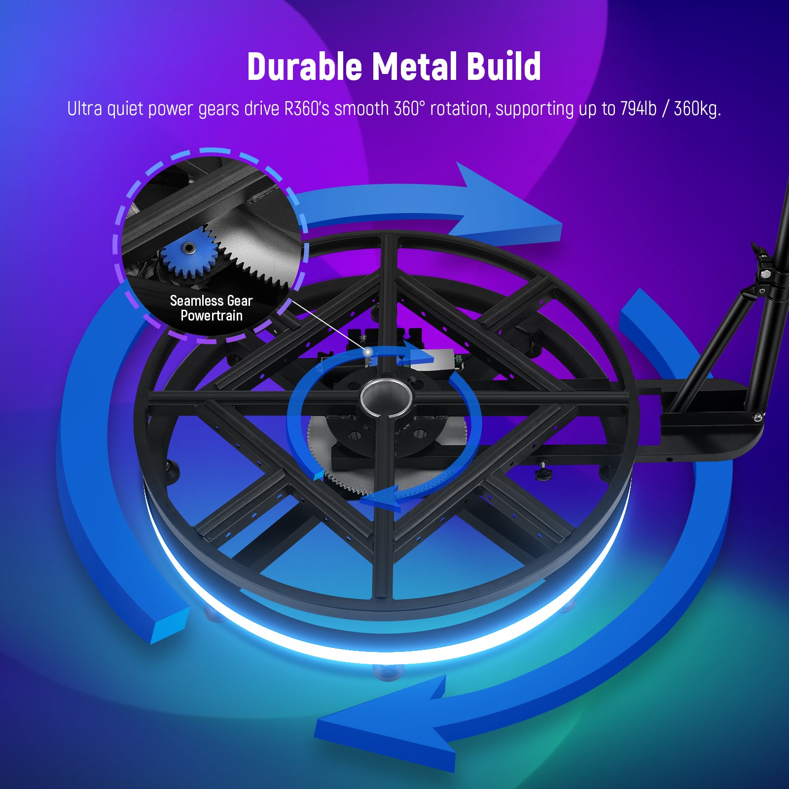 - Silent Operation & All Metal Turntable- The NEEWER R360 boasts high quality power gear sets for super low noise during rotation. Its thick all metal construction ensures a robust and load-bearing capacity, supporting a maximum static load of 800lb (360kg). This stability makes it an ideal pivot point for high-speed rotation of the light stand