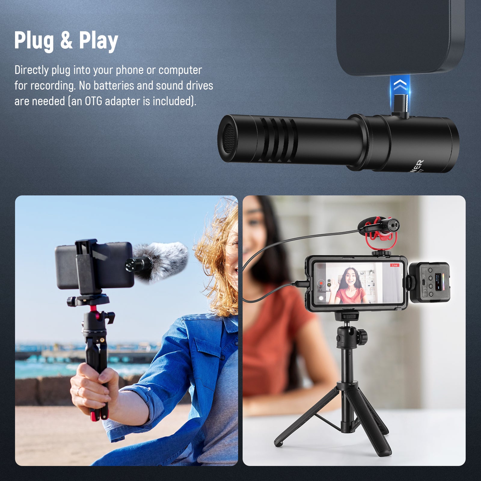 - Adjustable Light Stand & Phone Holder- The 3 section telescopic tripod stands extend up to 59''/150cm and feature a 1/4" ball head that supports 180° vertical tilt and 360° horizontal rotation, catering to various shooting heights and angles. Their reversible legs can fold flat, reducing the stand to a compact 16.9''/43cm size for effortless transport. Additionally, include 2 phone holders that allow 360° swiveling of your smartphones, compatible with devices ranging from 2.36"-3.93"/6-10cm