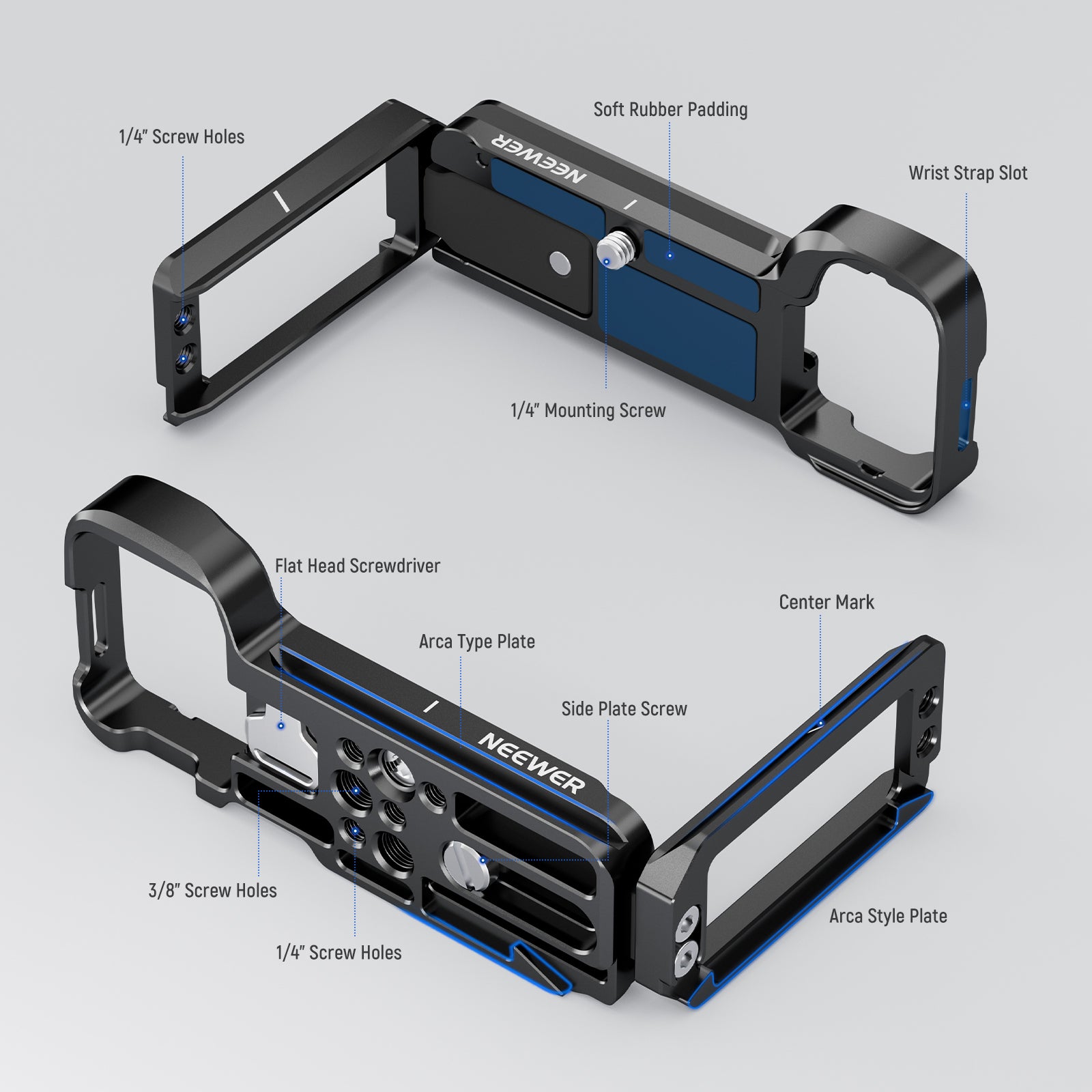- Secure & Stable Installation- The L plate attaches to the camera via a 1/4" screw and features a raised edge for increased stability. Nonslip rubber pads protect the camera against scratches, and a magnetic screwdriver allows a secure installation