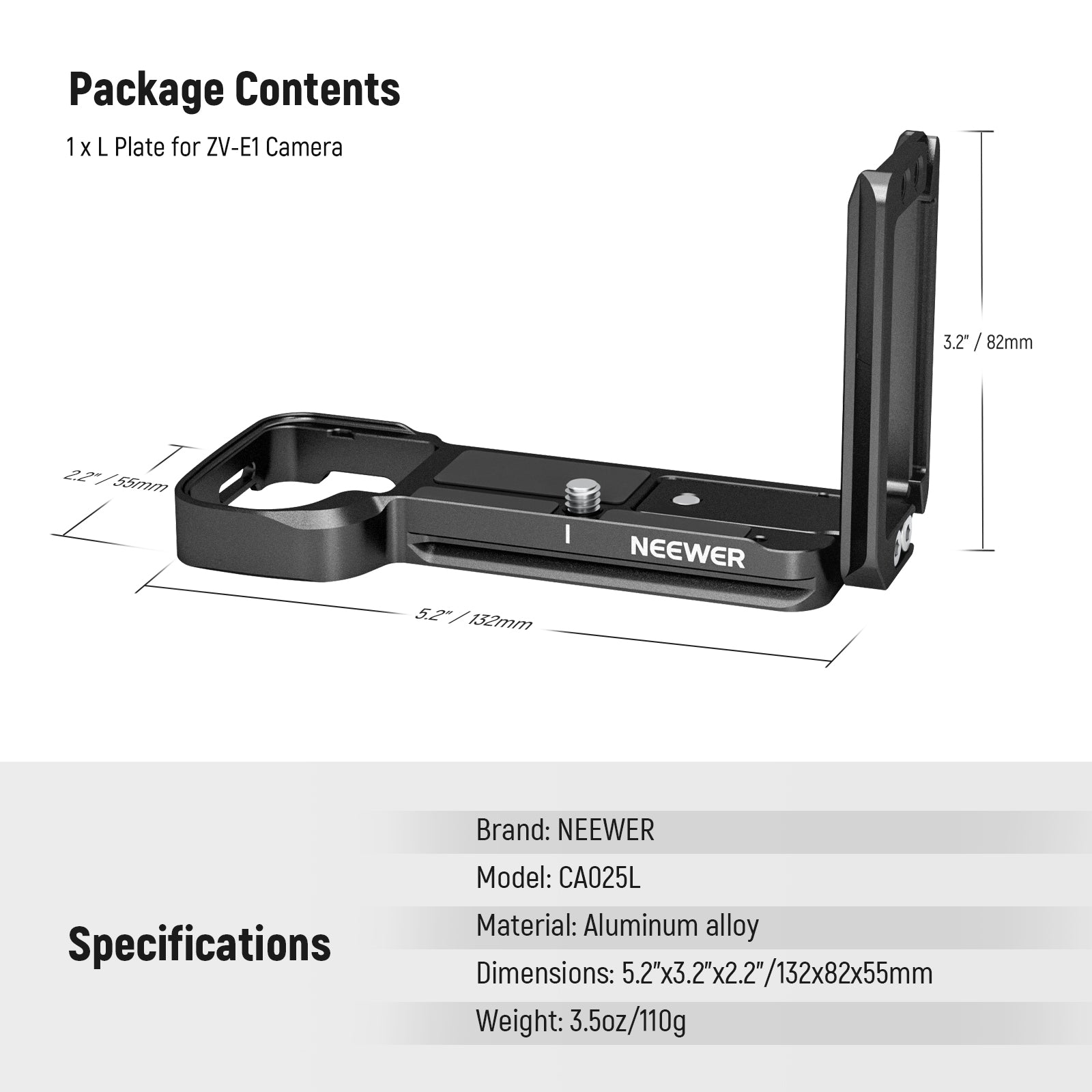 NEEWER CA025L Aluminum L Plate for Sony ZV-E1