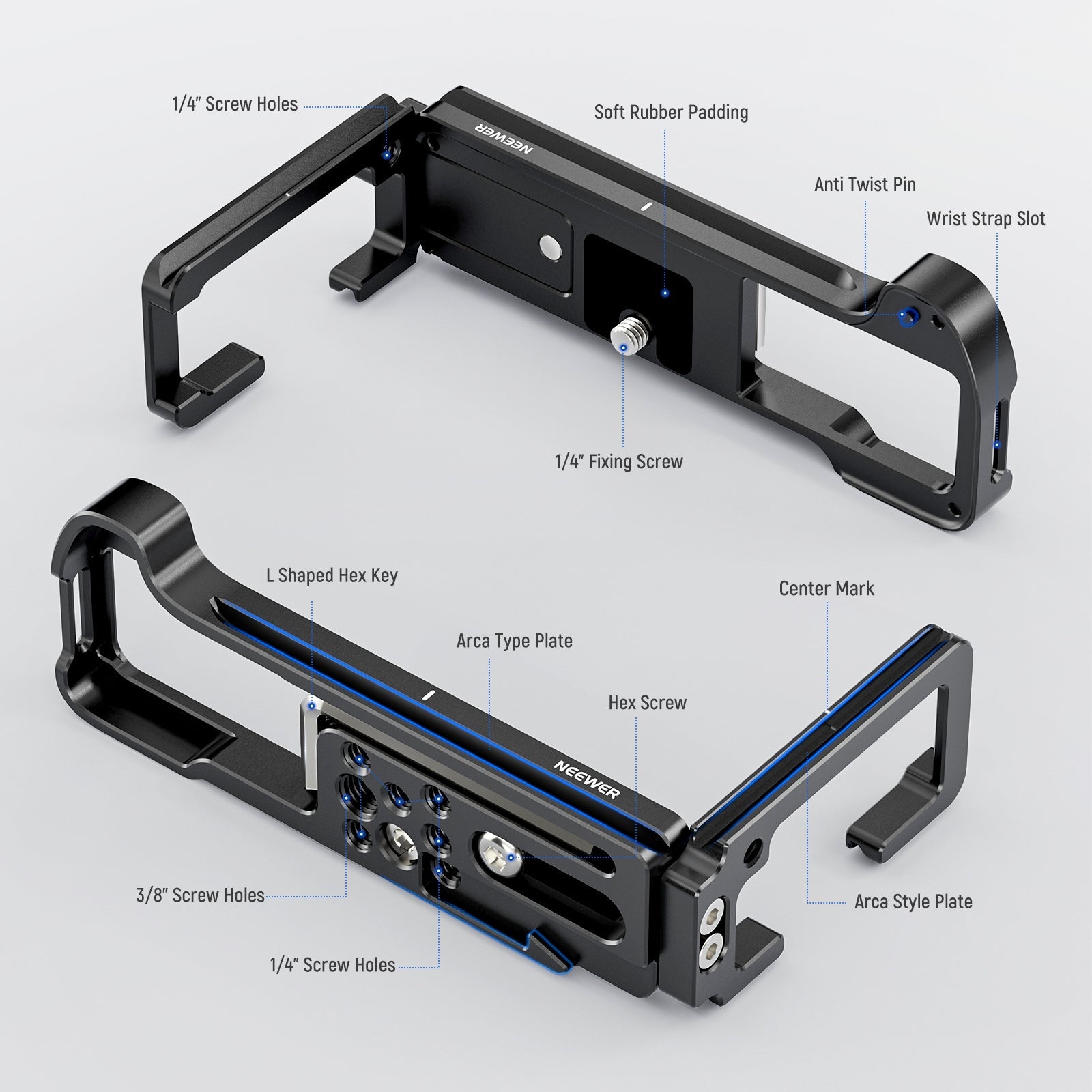 - Secure Installation by 2 Points- Your X-T4 camera will attach to the L plate via a 1/4" screw, with a locating pin to prevent it from shaking and twisting. A soft rubber pad protects your camera from scratches