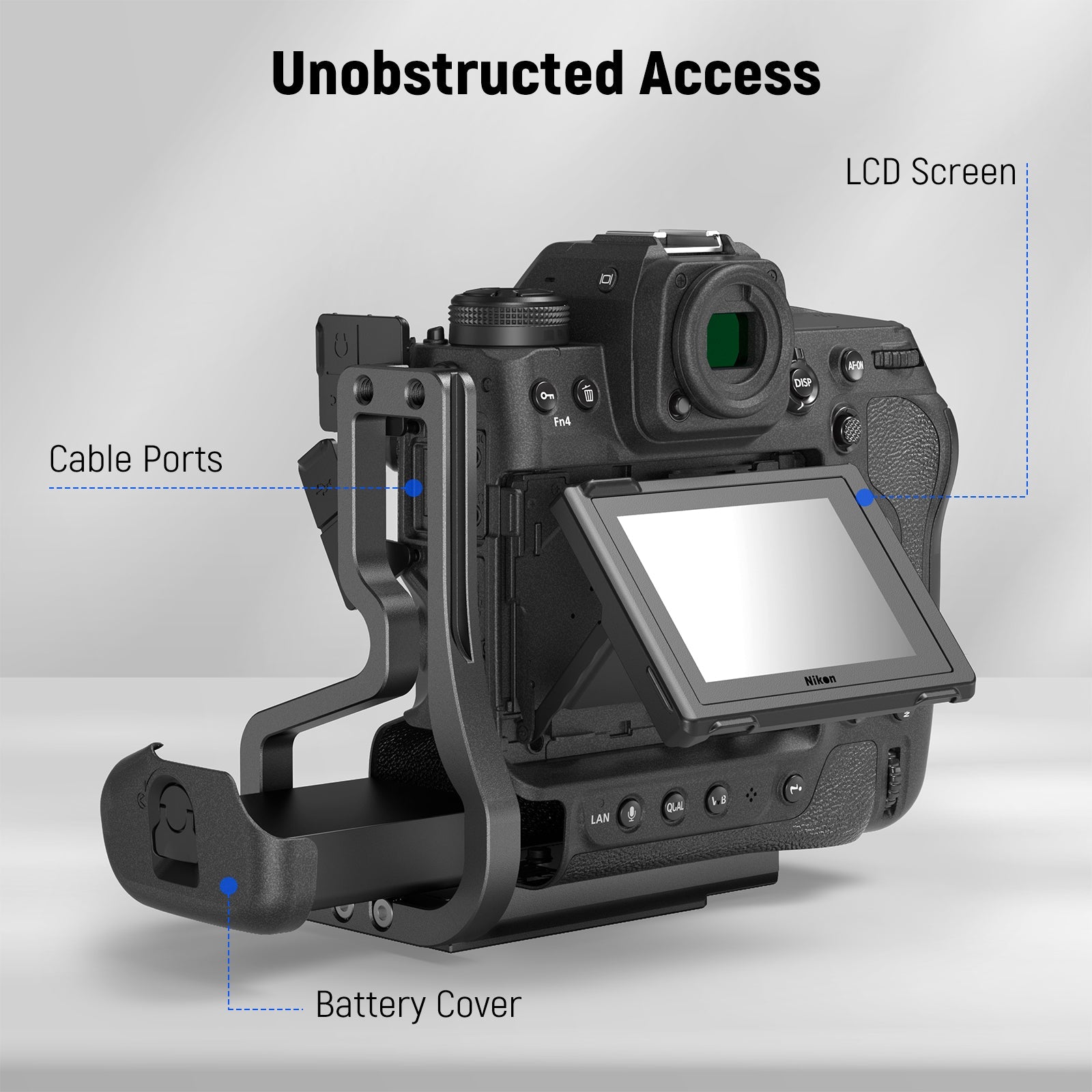 - Compatible with Nikon Z9- CA034L is a reinforced and thickened aluminum alloy L plate compatible with Nikon Z9 mirrorless camera. Engineered with CNC precision machining, it can protect the camera and ensure full access to the function buttons, ports, card slots, battery compartment, and LCD screen