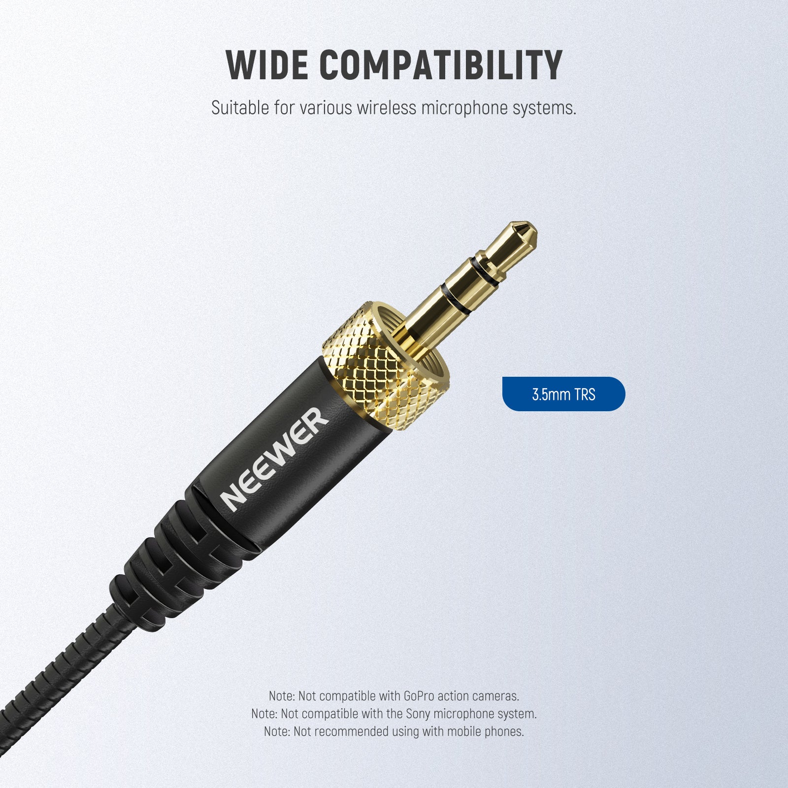- Universal Compatibility- Featuring a 3.5mm TRS gold plated male plug, the NEEWER CM7 is suitable for cameras, camcorders, audio recorders, tablets, and laptops with a 3.5mm TRS female jack. Also compatible with Rode Wireless GOII, compatible with DJI Wireless Mic Transmitters, and NEEWER CM28 wireless microphone systems.