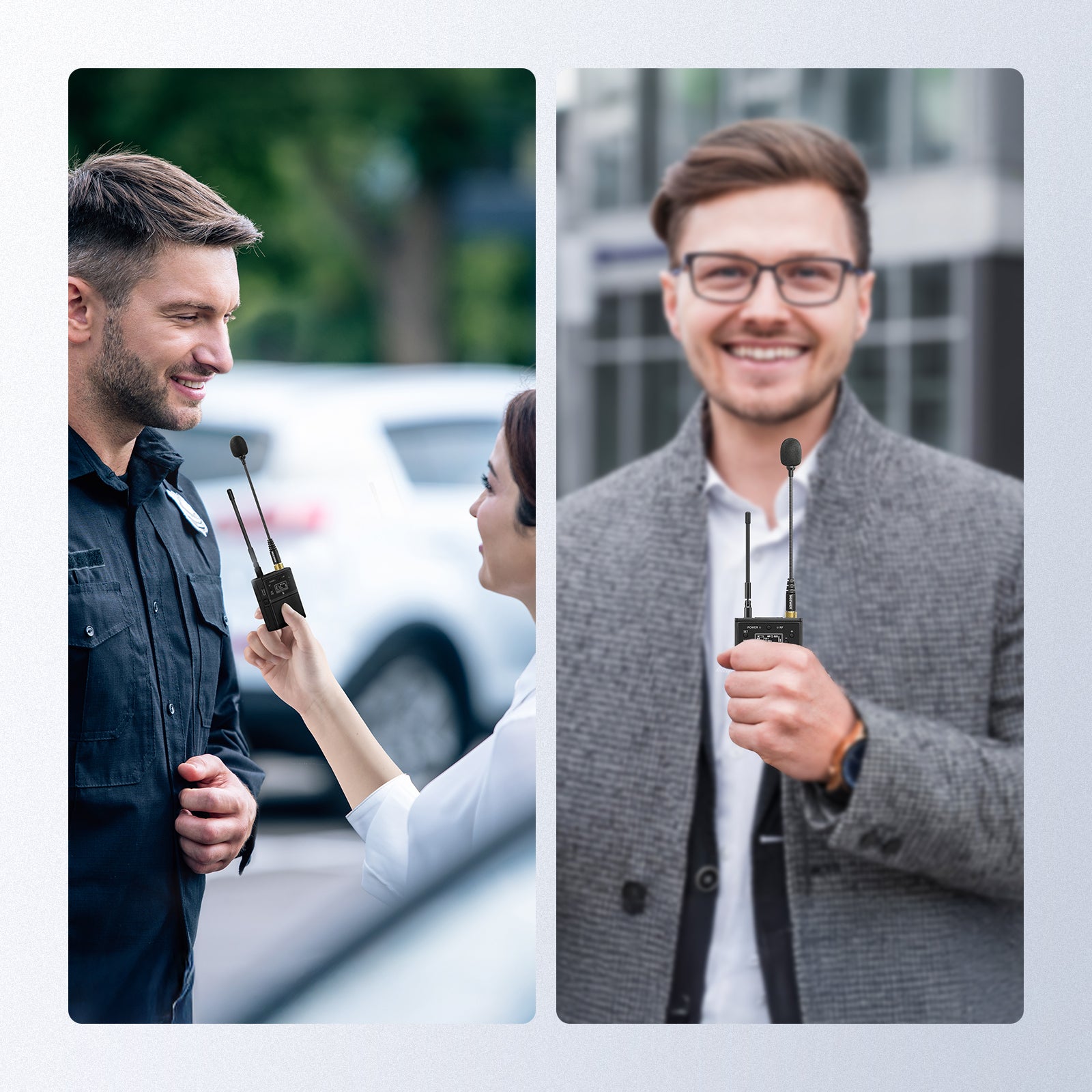 - For Wireless Microphone Handheld Interview Application Design- In interviews, vlogs, live events, broadcasts, and other occasions that require minimum microphone visibility and maximum operating comfort, users can adjust the position of the microphone as needed to get the best audio quality in close proximity