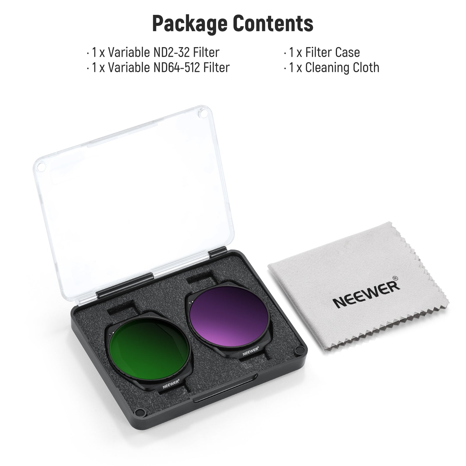 - Compatible with DJI Air 3S- Compatible with DJI Air 3S Drone and Air3S Fly More Combo, this filter accessories kit includes two variable neutral density filters, variable ND2-32 and variable ND64-512, for professional aerial photography and videography