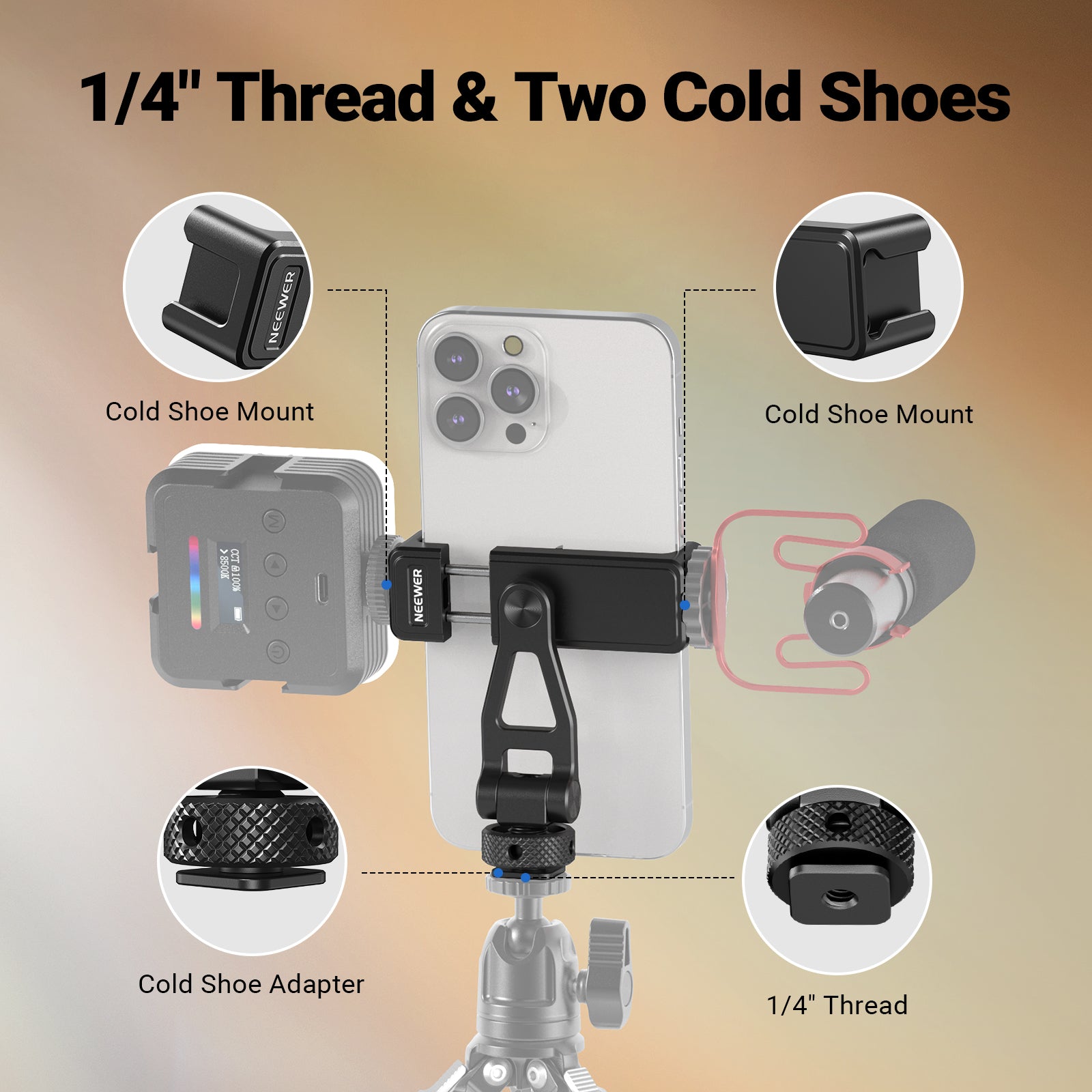NEEWER GA010 Phone Tripod Mount with Cold Shoes