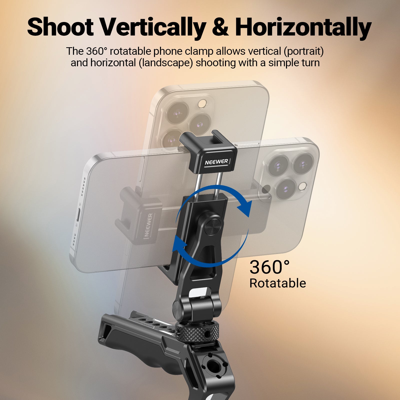 - Multi Angle Monitoring & Accessory Expansion- The clamp is 360° rotatable for easy vertical and horizontal switches, and the bracket with a 180° rotating pivot for back and forth adjustments, ideal for overhead, upward, and vertical shooting angles. There is a cold shoe mount on both sides of the clamp for LED video lights, RGB lights, microphones, etc