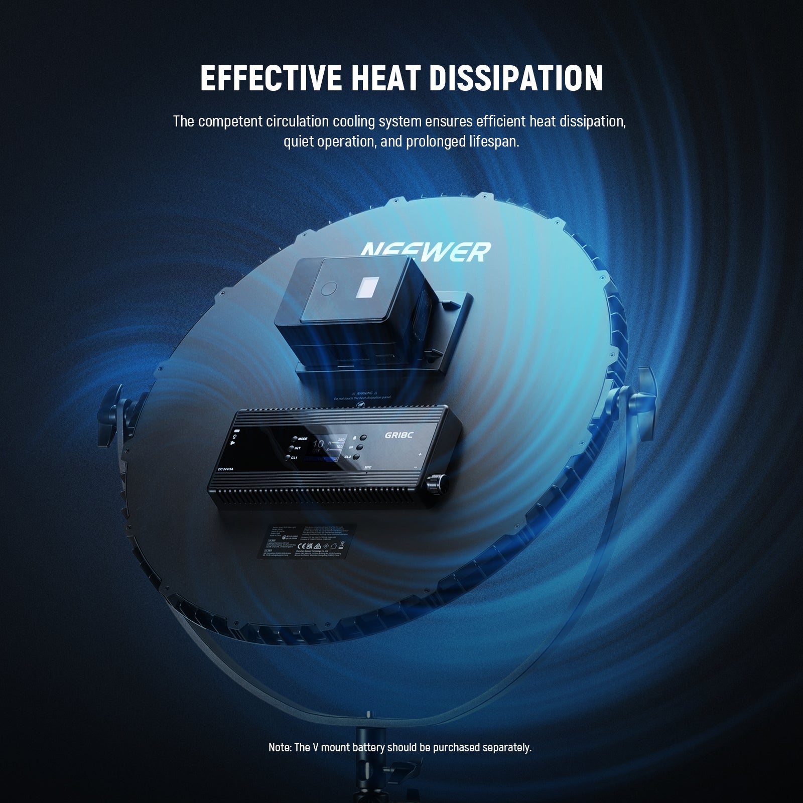 - Power Adapter Included & V Mount Battery Compatible- Includes a 24V power adapter and power cord (US Plug) for indoor use; this LED light panel also features a V mount for V mount batteries like NEEWER PS099E, PS099EP, PS150E, BP-190WS (all not included) for outdoor use, ensuring uninterrupted power throughout the day