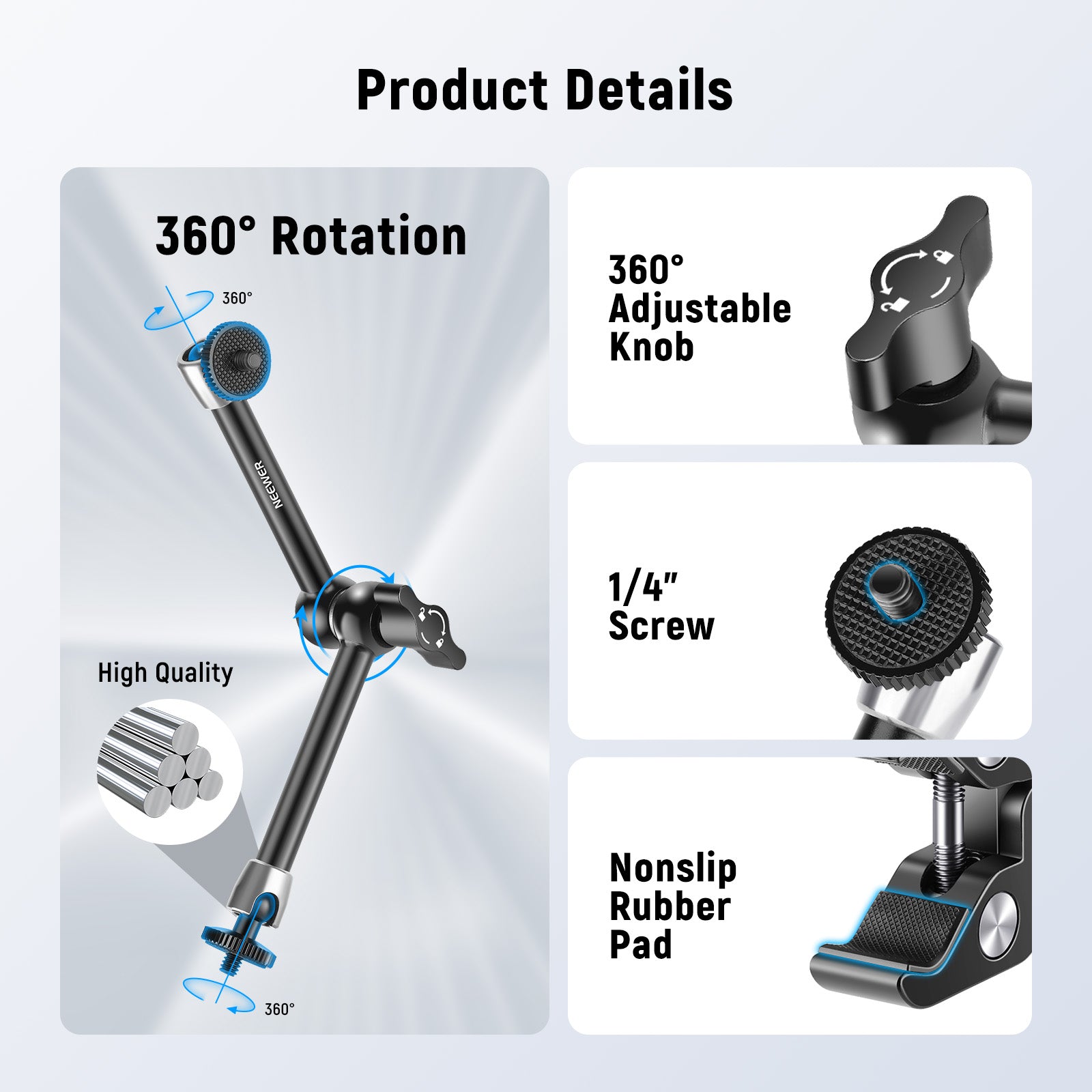 - Cold Shoes & 1/4" Threads- Attach the mixer to your camera via a cold shoe adapter and secure with the thumb wheel. The three additional cold shoe brackets allow mounting of wireless receivers (NEEWER CM31, CM28, CM28 PRO, and more) or LED lights (NEEWER PL81, RGB62). 1/4" threads can connect magic arms and other small photography gear or accessories as content creator essential and influencer must have