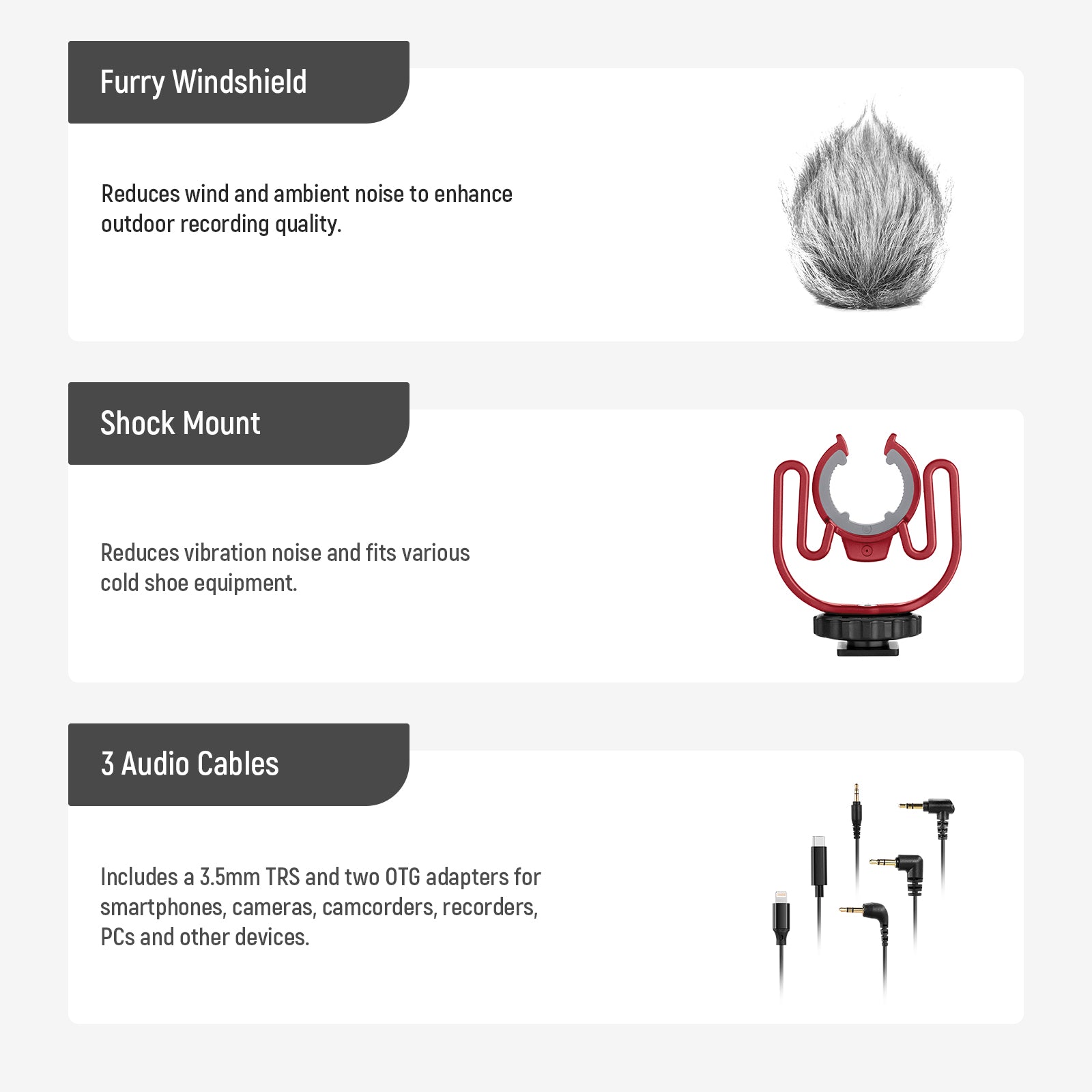 - Record with 2 Microphones- This small microphone audio mixer can mount two microphones at the same time via its cold shoes and allow you to achieve professional and flawless audio quality for filming, vlogging, podcast, and interviewing