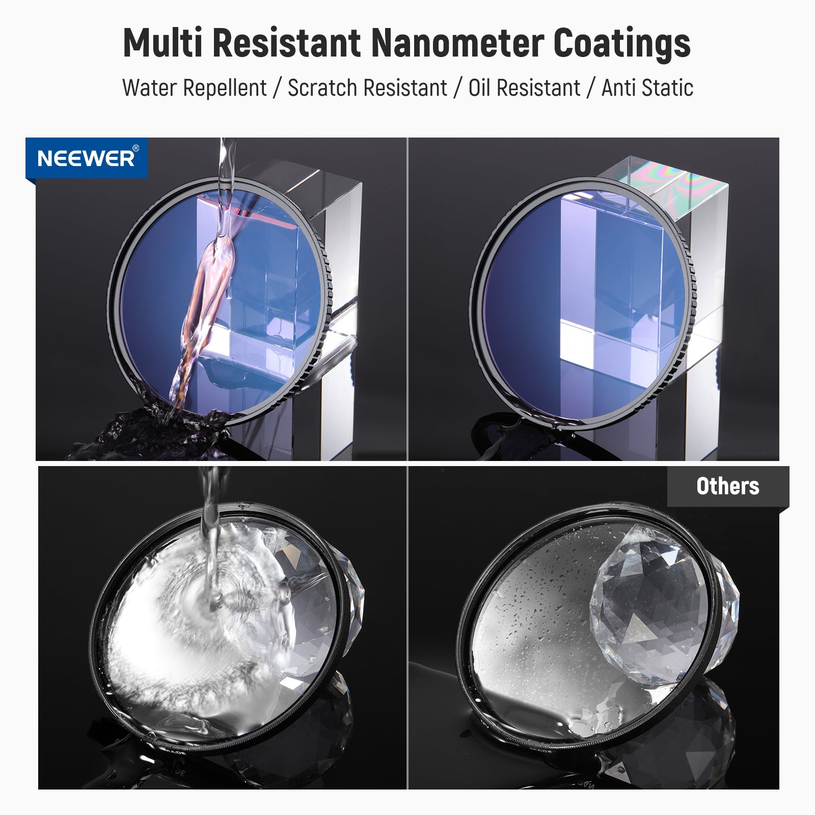 - Anti Reflective and Anti Fingerprint Coatings- The natural night filter is constructed with 28 layers of anti reflective and anti fingerprint coatings on both sides. Water repellent, scratch resistant, and oil proof, the filter offers great protection for your camera lens
