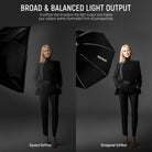 - Quick Release & Fold- With its integrated structure, the softbox enables instant opening and closing in just a few seconds. Experience seamless lighting control at your fingertips, saving you time and effort. It's a more convenient and efficient alternative to traditional versions