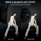 - Premium Octagonal Softbox- Elevate your portrait, weddings, fashion photography, video recording, live streaming, and interviews with this essential octagonal softbox. Silver interiors intensify light source while maintaining true color. Includes diffusers and a grid for softening glare and eliminating shadows. Lightweight with a nylon alloy chuck structure and a carrying bag for outdoor portability