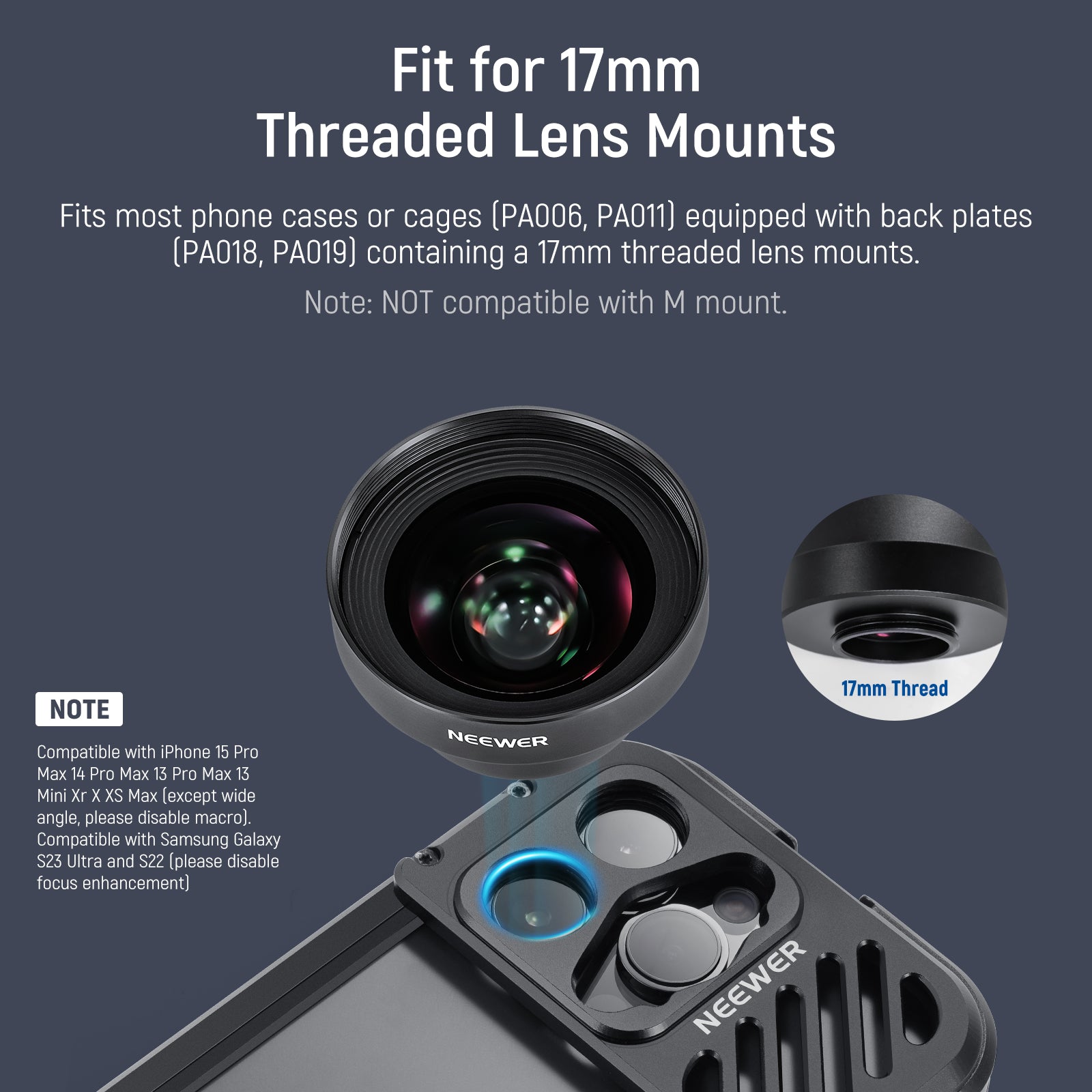 - Built In 17mm Lens Threads- Built in 17mm lens threads on Main and Telephoto Cameras connect 17mm phone lenses for creative shots, including macro, fisheye, microscope, telephoto, wide angle, and blue anamorphic (lenses sold separately)