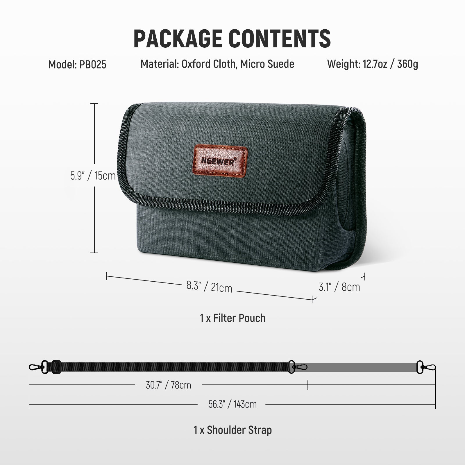 - Professional Filter Carry & Storage Bag- NEEWER Hard Shell Camera Lens Filter Case with Shoulder Strap stands out to protect your valuable lens filters. Made of sturdy and water resistant material, this bag is durable for storing and carrying, ideal for 4'' x 4'' or 4'' x 5.65'' square, or 95mm circular filters