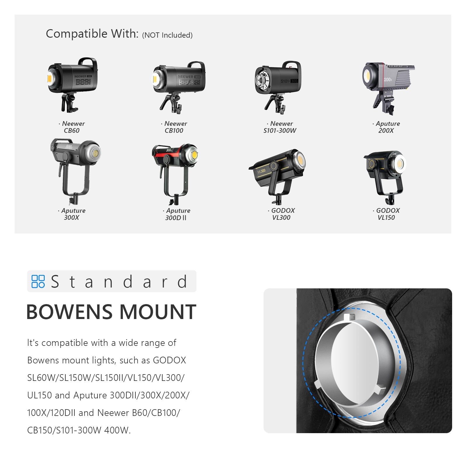- The softbox fits for the 300w 400W 600w 800W 1000w studio flash.