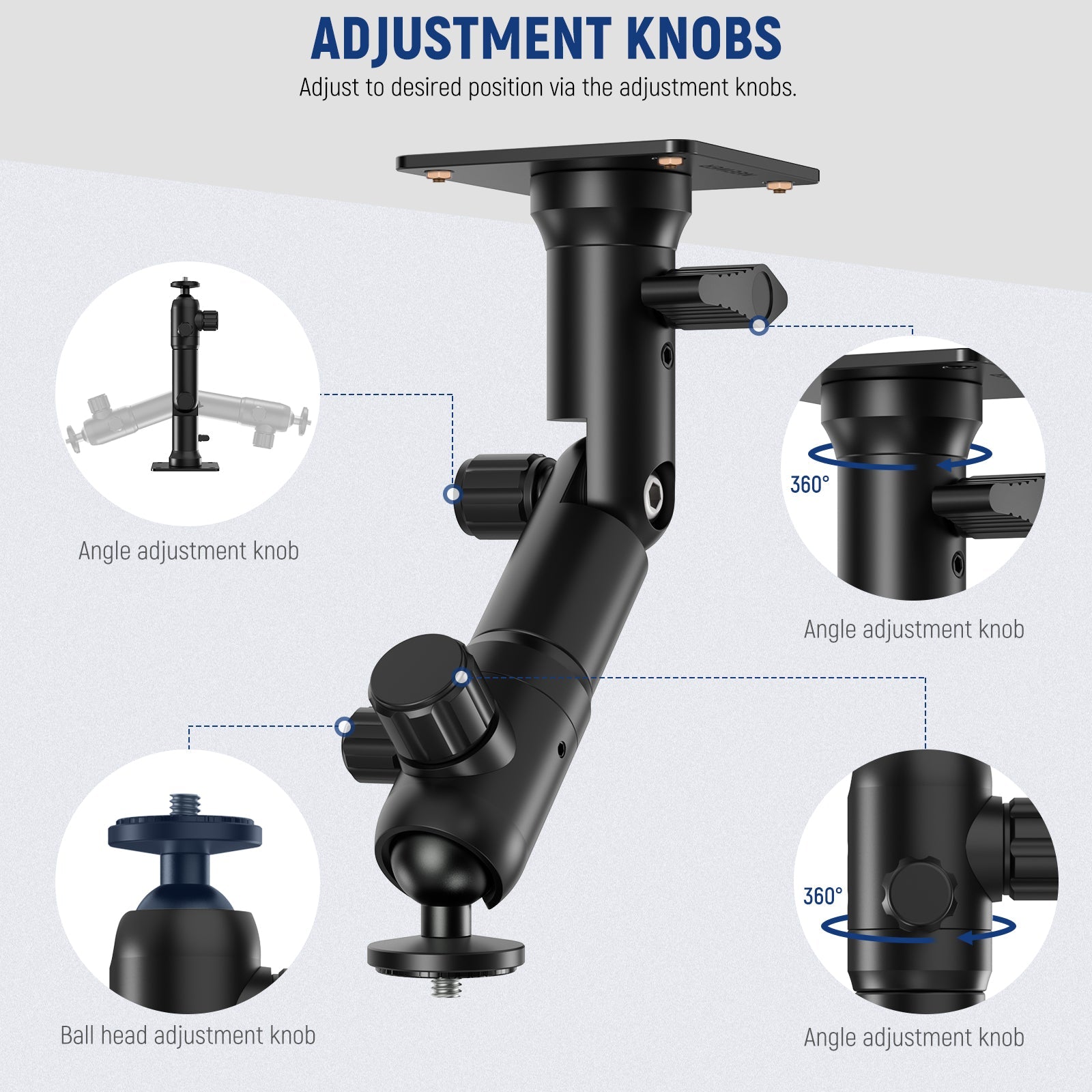 - Space Saving Camera Mounting Bracket- Securely mount your devices at a distance of 2.7"/7cm from the wall, ceiling even desk top, and adjust at will, to save floor space and reduce clutter especially when you have limited space