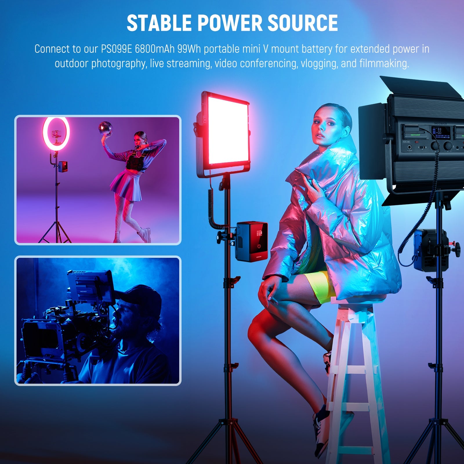 - Stable Power for Longer, Safer Footage- Say farewell to cable failures and interrupted video lighting or monitoring. Our intelligent chip guarantees a constant and stable power supply for your creation. Connect to our PS099E 6800mAh 99Wh portable mini V mount battery for extended power in outdoor photography, live streaming, video conferencing, vlogging, and filmmaking