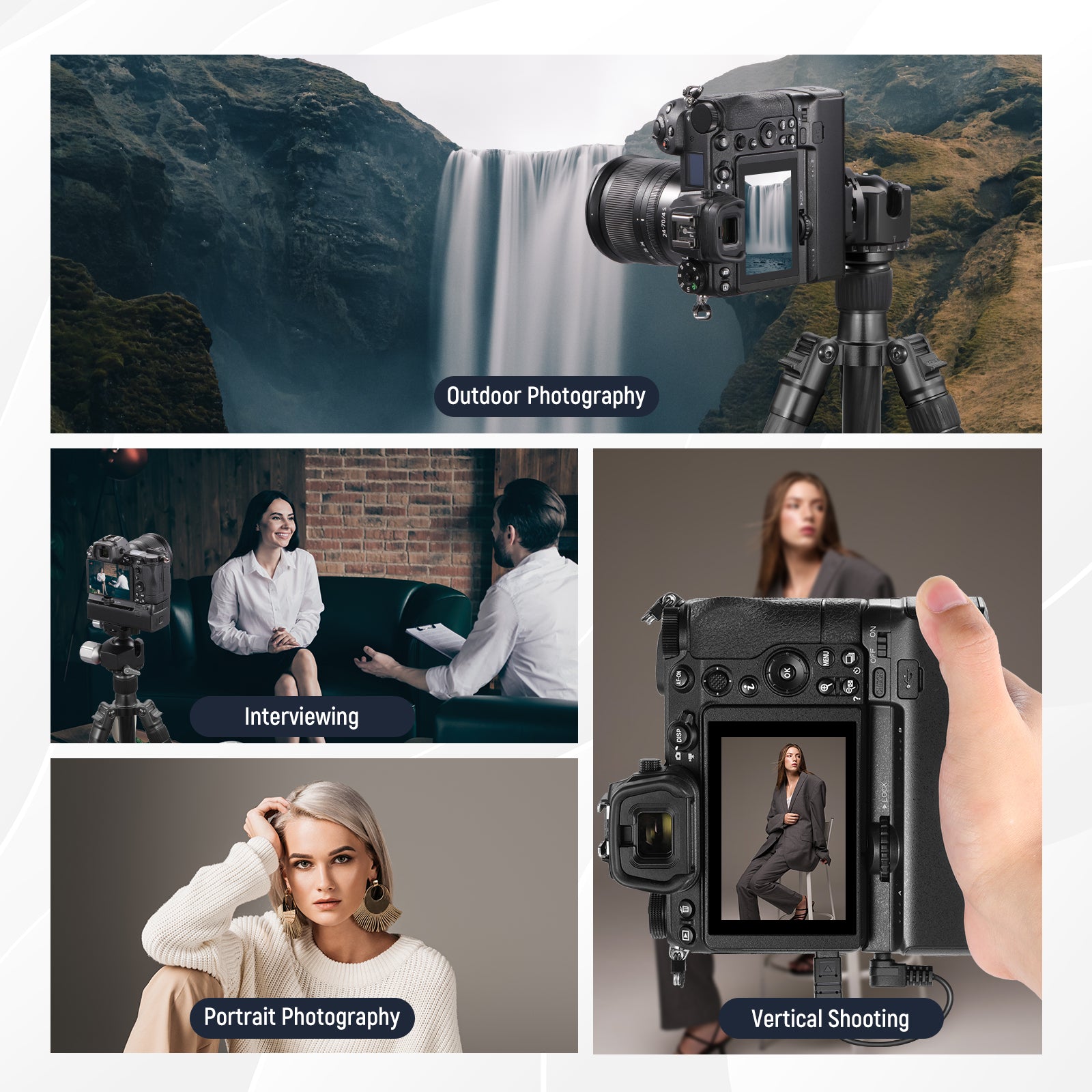 - Firm Grip for Vertical & Horizontal Shooting- With the battery grip mounted, it's easier to hold and grip your camera with one hand, especially when using a heavy telephoto lens. With larger hold area, firmly and comfortably switch your camera from horizontal to vertical position to take vertical shots