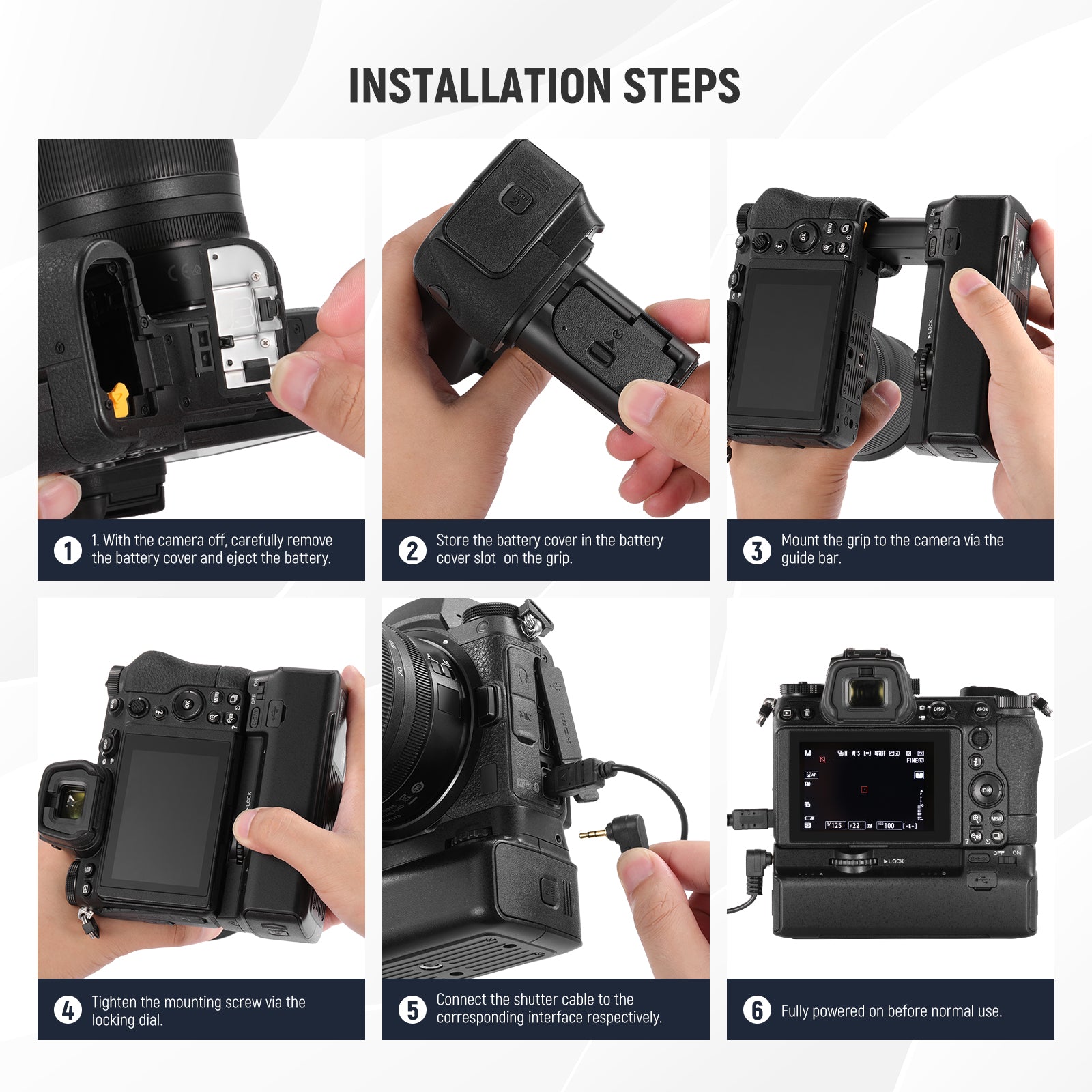 - Shutter Release Button Included- A shutter release button is included at the right corner of the grip to make shutter control much easier. Simply use the included shutter cable to connect the grip to your camera, then press the button to control your camera shutter to open or close