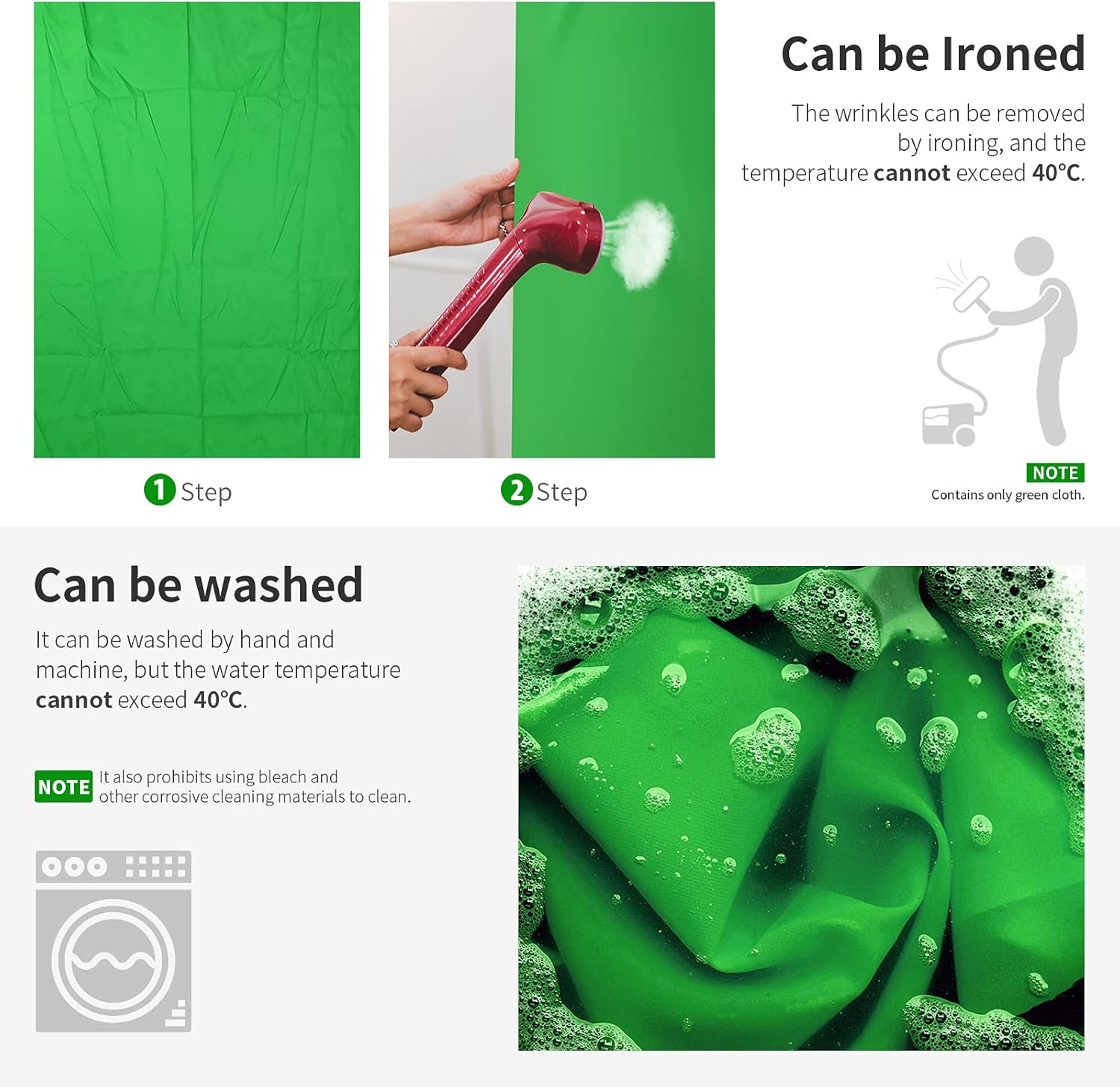 - If necessary, the Backdrop can be washed by hand and machine. It prohibits using bleach and other corrosive cleaning materials to clean.
