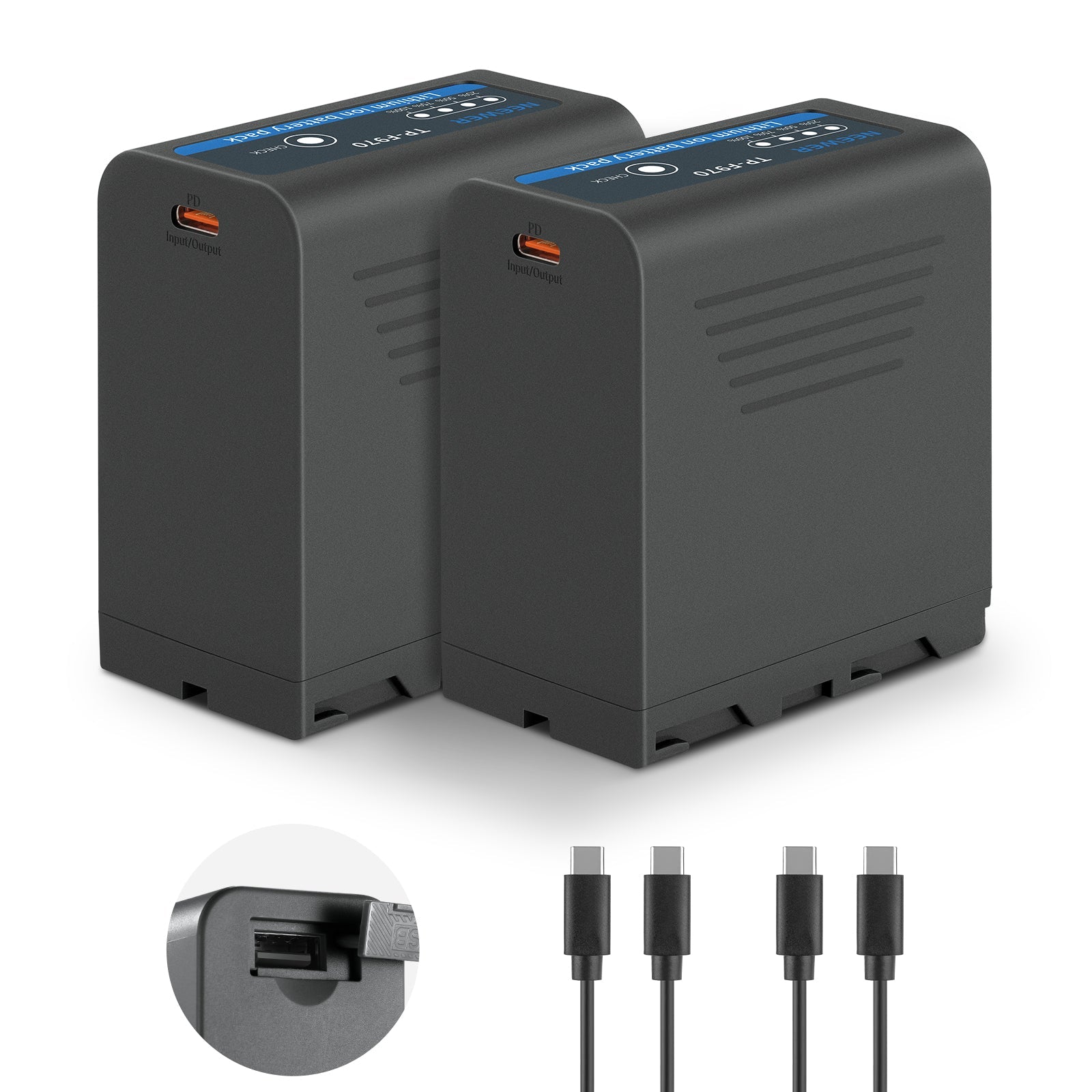 - Dual Ports & Easy Recharge- The NP-F970 battery is equipped with a USB A port and a bidirectional USB Type C port. The USB Type C port can function as an input or an output and support 20W PD fast charging to fully charge the battery in 2.5 hours. The USB A port features a 5V output to charge smartphones and tablets. Recharge the battery through wall sockets, car chargers, and portable chargers