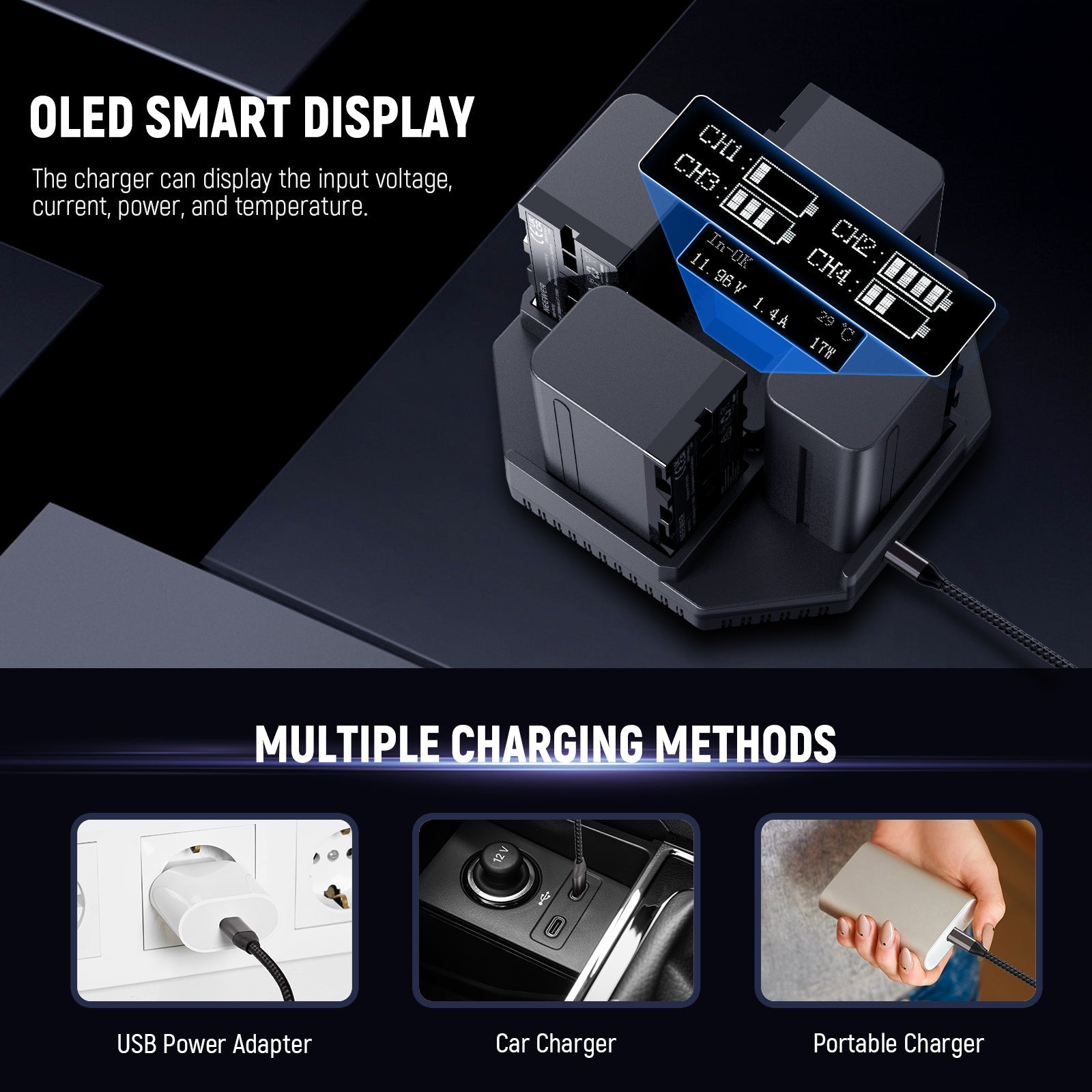 NEEWER NW-F4+NW-F970 7800mAh Replacement Batteries & 4 Channel Fast Charger