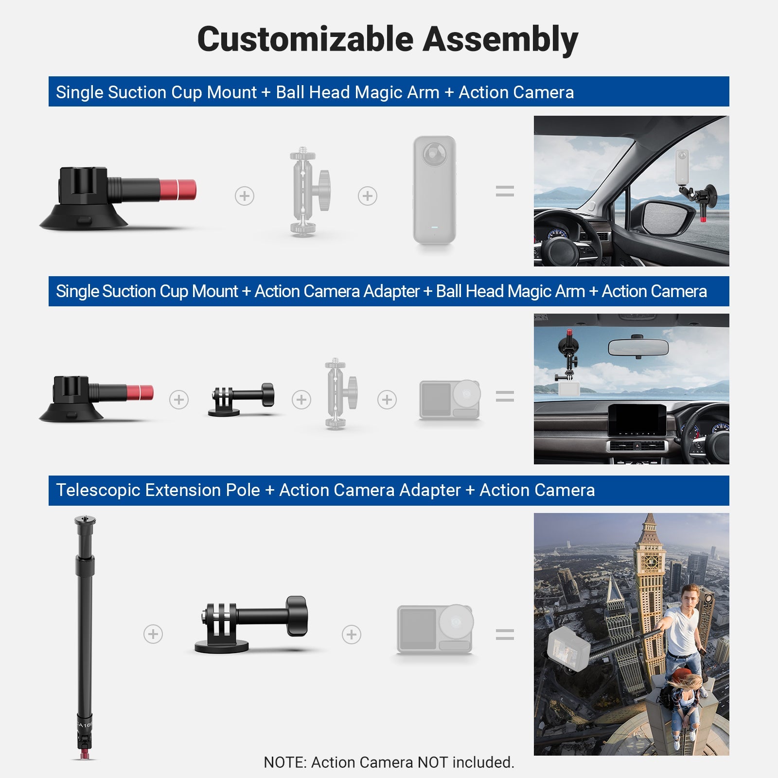 NEEWER CA136 Triple Suction Cup Extension Pole Car Mount Kit