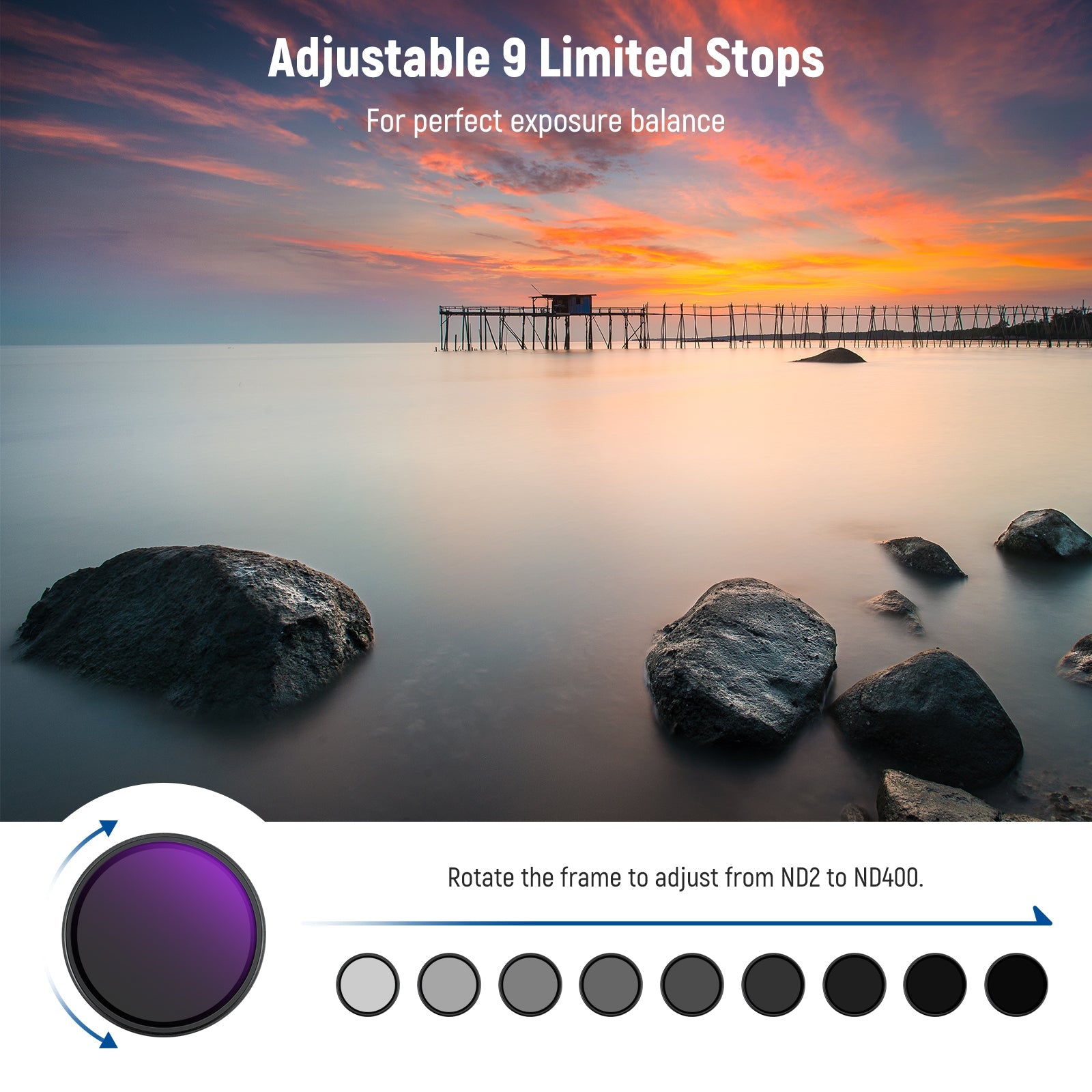 NEEWER camera lens filters offer a range of options, including ND, CPL, UV protection filters, and more. These filters enable you to capture breathtaking images and videos with precise lighting control and accurate color reproduction. Additionally, UV protection filters help protect your lens from damage. Choose a high-quality camera lens filter to elevate your photography.